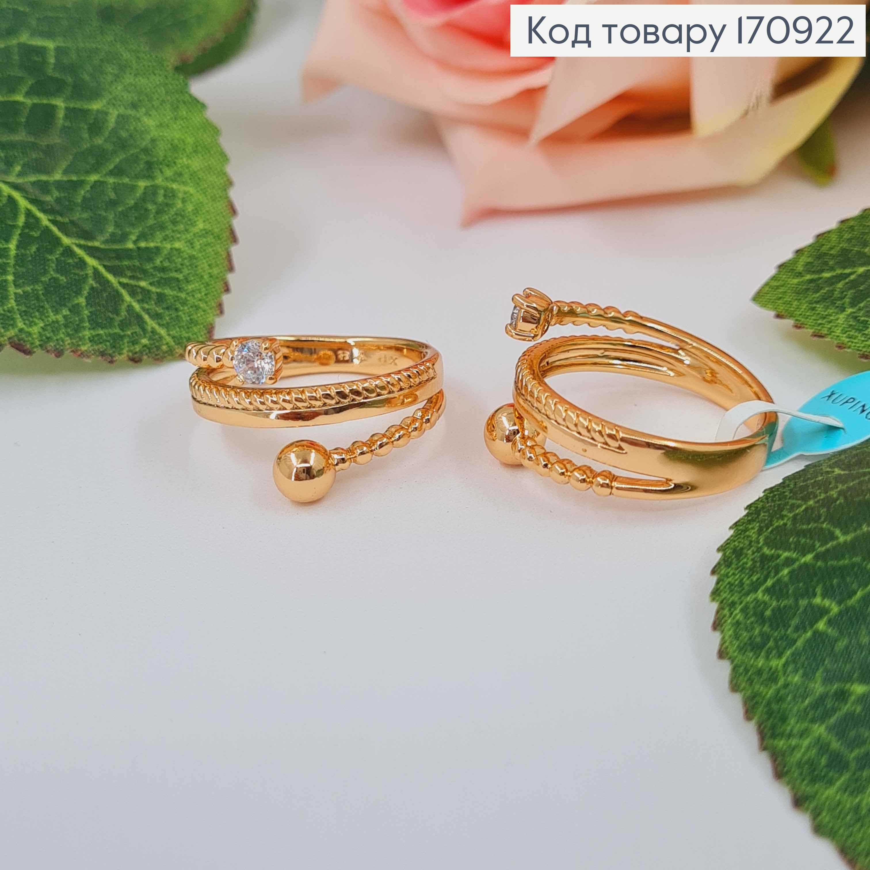 Кольцо, Спиралька с камнем и шариком, Xuping 18К