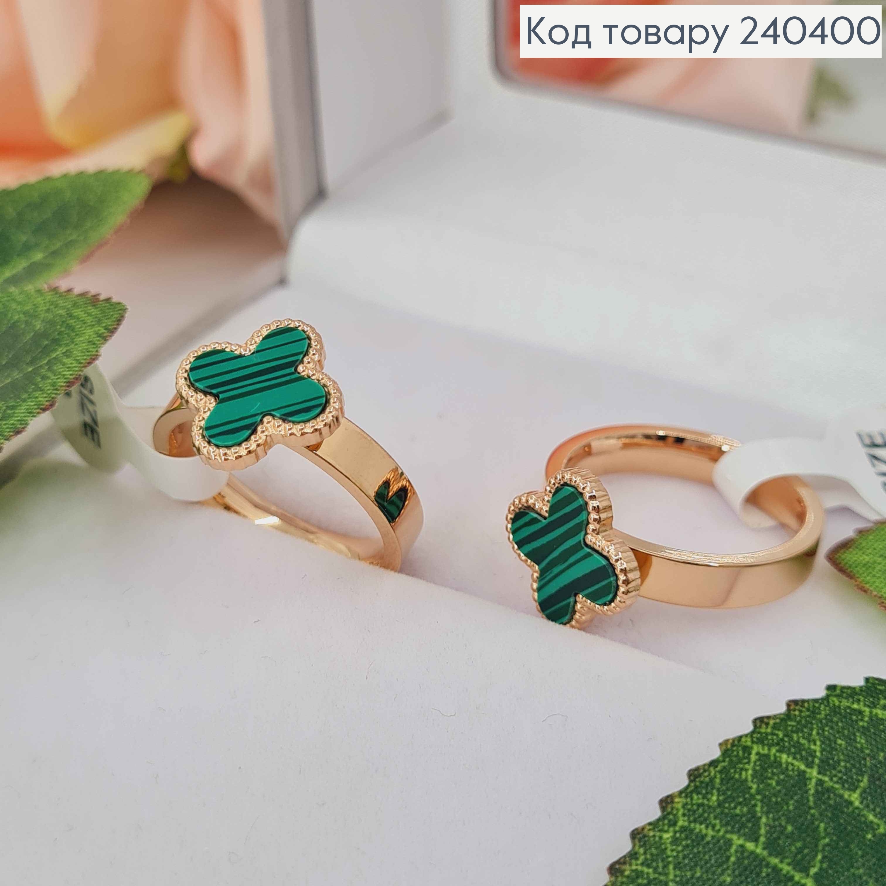 Кольцо золотого цвета, четырехлистник с зеленой эмалью, "Van Cleef", сталь Stainless Steel