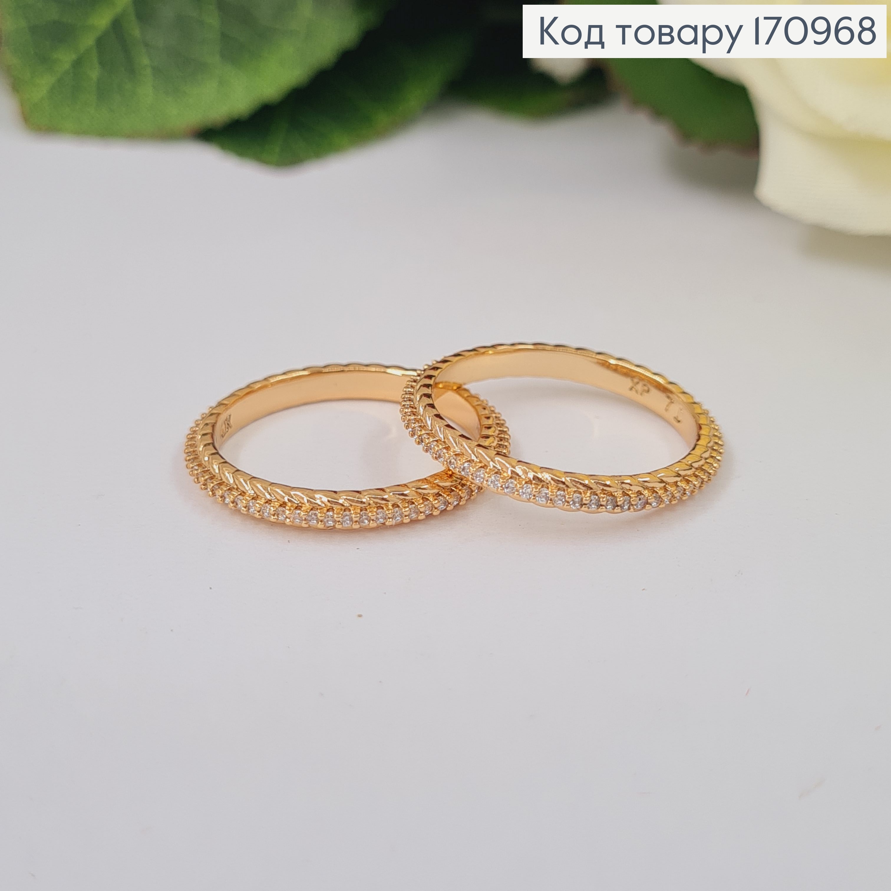 Кольцо с блестящими камнями и тиснением, Xuping 18К. 171262 фото