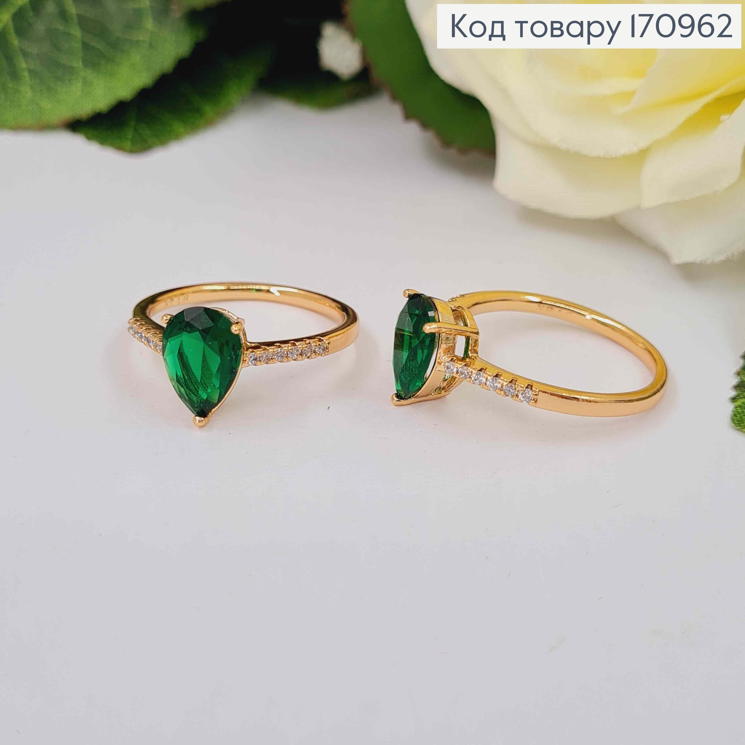 Кольцо в камешках, с Зеленым камешком капелькой, Xuping 18К