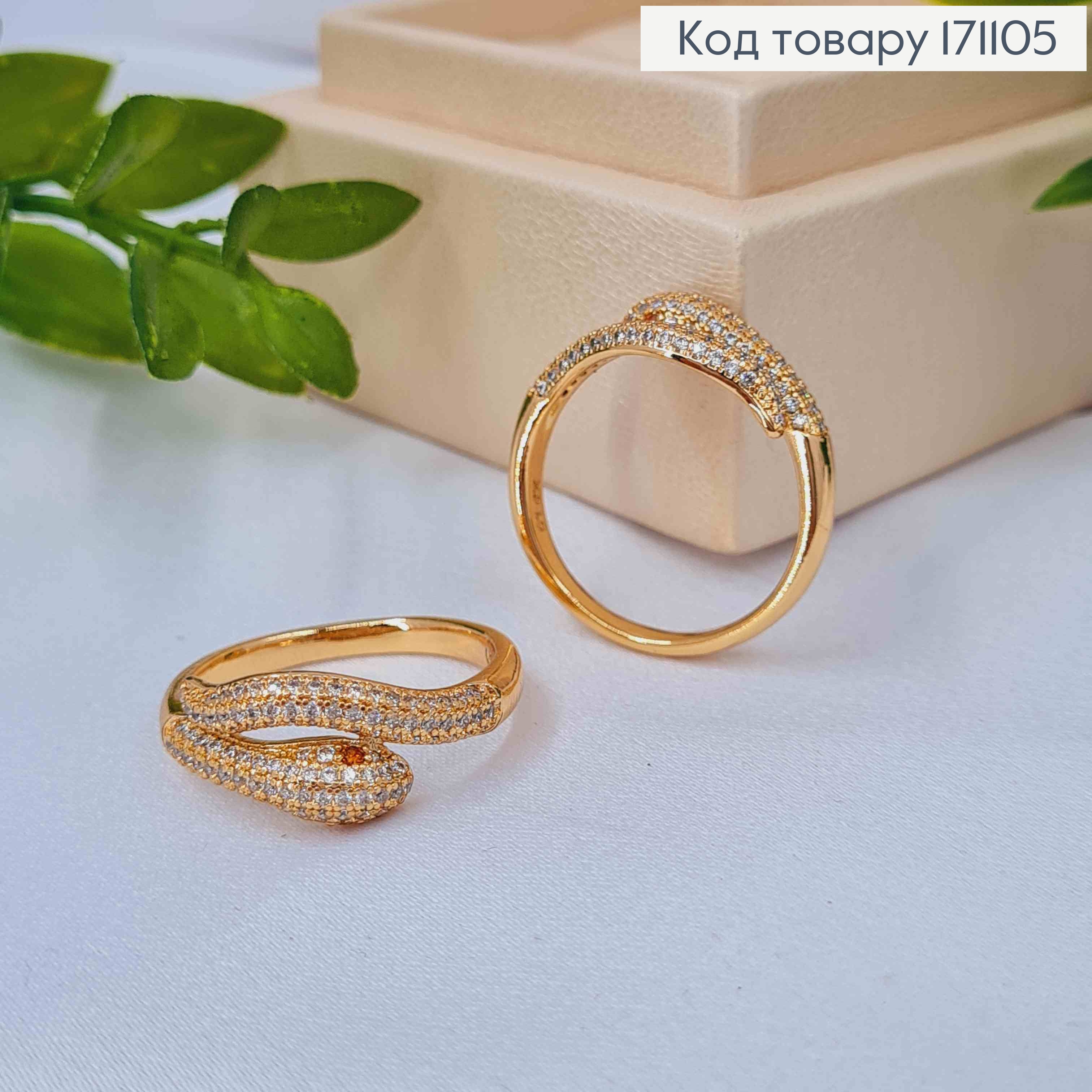 Кольцо "ЗМЕЯ" украшено Блестящими камнями, Xuping 18К