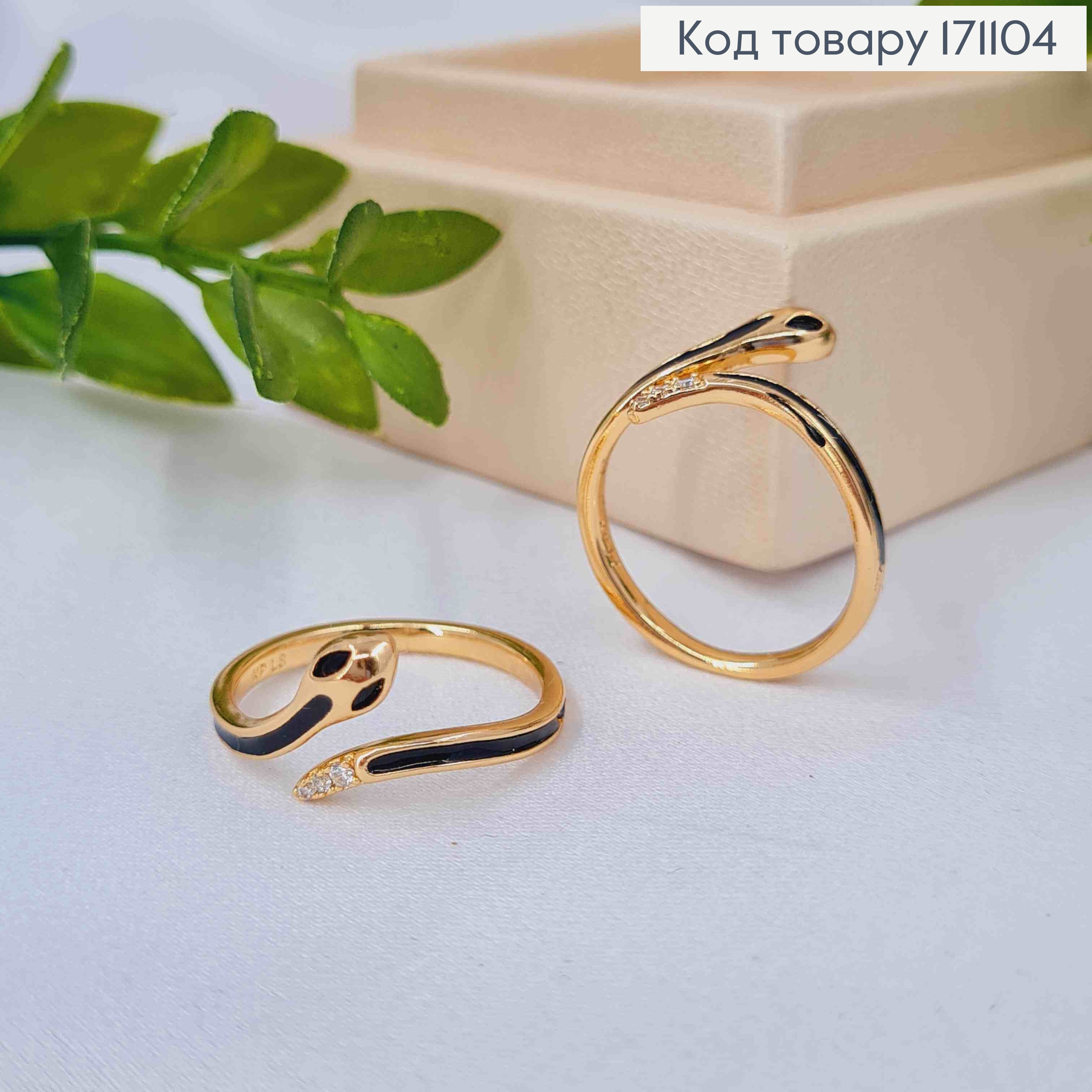 Кольцо "ЗМЕЯ" украшено Черной эмалью и Блестящими камнями, Xuping 18К