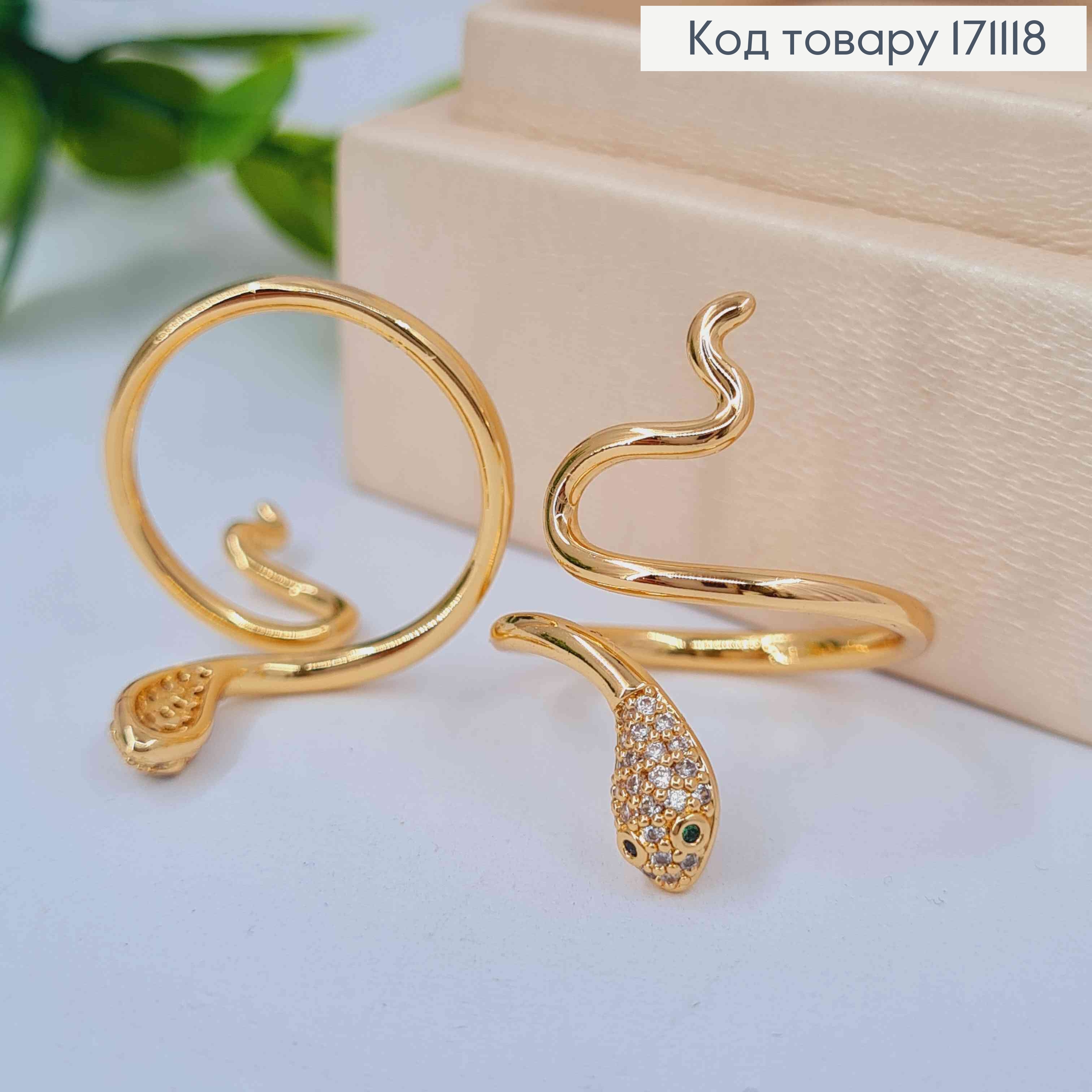 Кольцо "ЗМЕЯ" с Блестящими камнями и Зелеными глазами, Xuping 18К