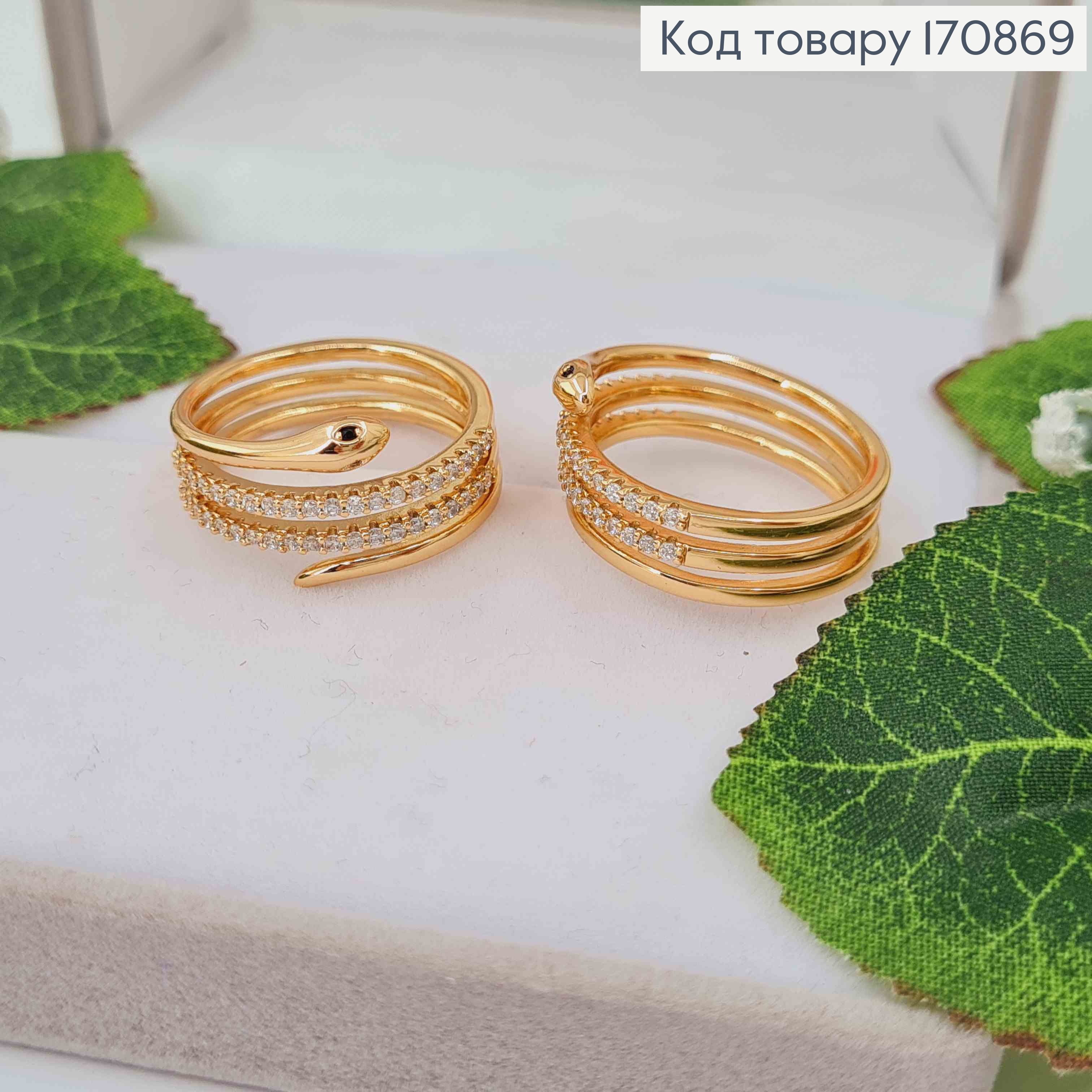 Кольцо Змейка тройная, в камнях, Xuping 18K