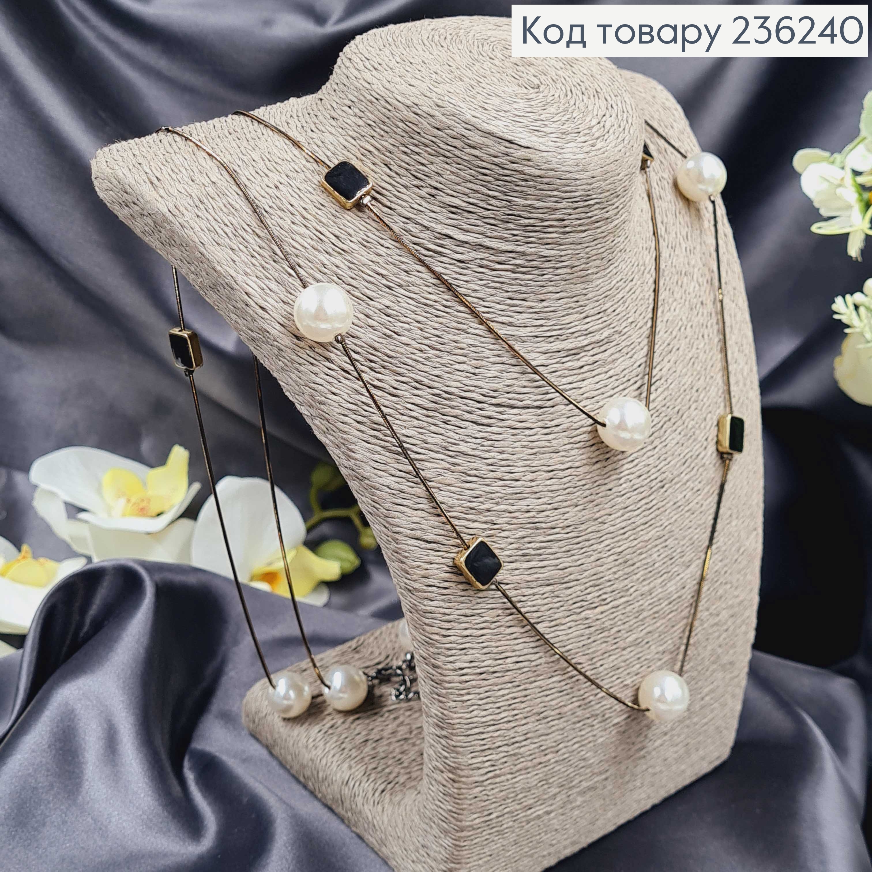 Подвеска на шею двойная с Жемчужинами и чорными квадратами, 170см