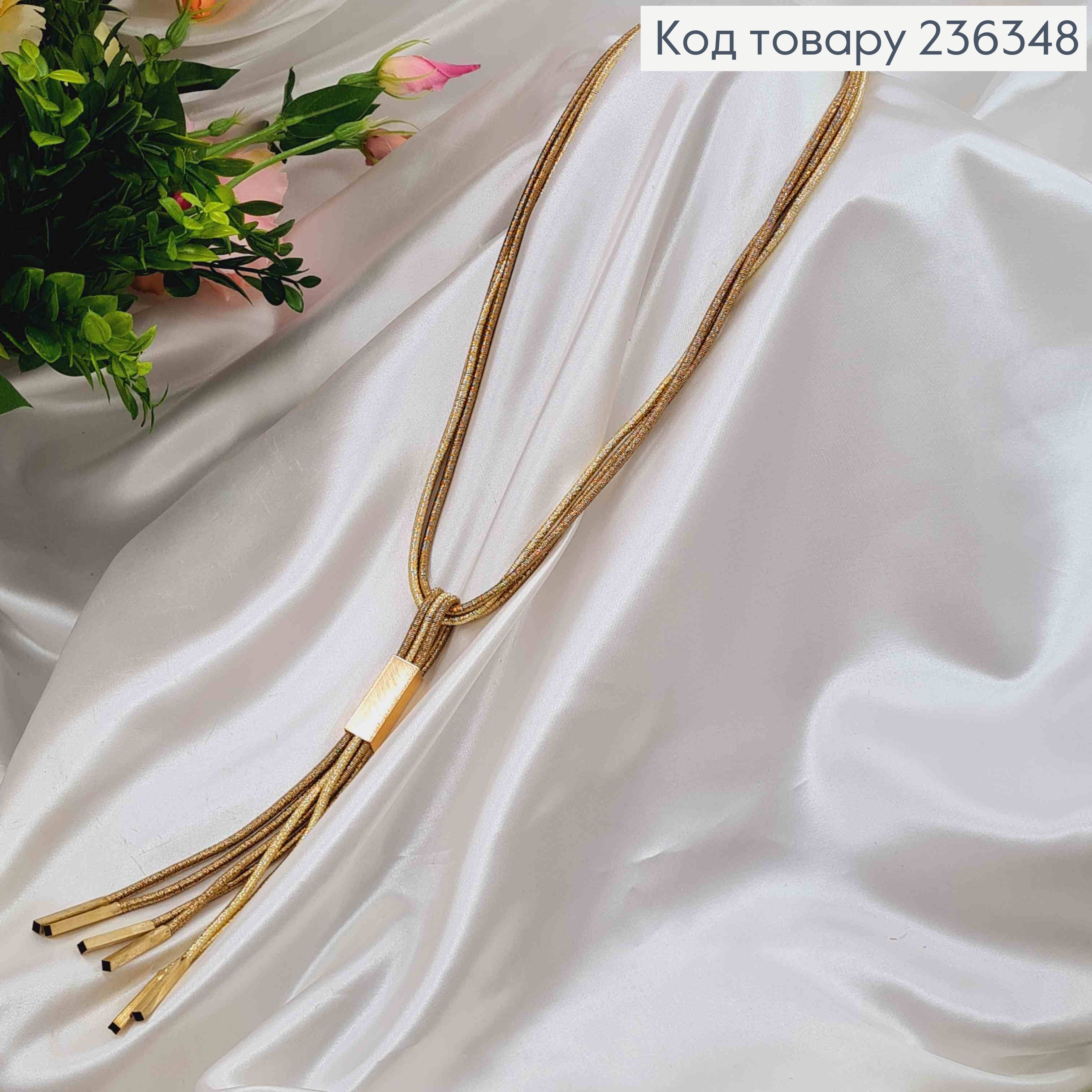 Подвеска плетеная, блестящая с узелком и металлической пластинкой, в коричневых тонах, 50см.