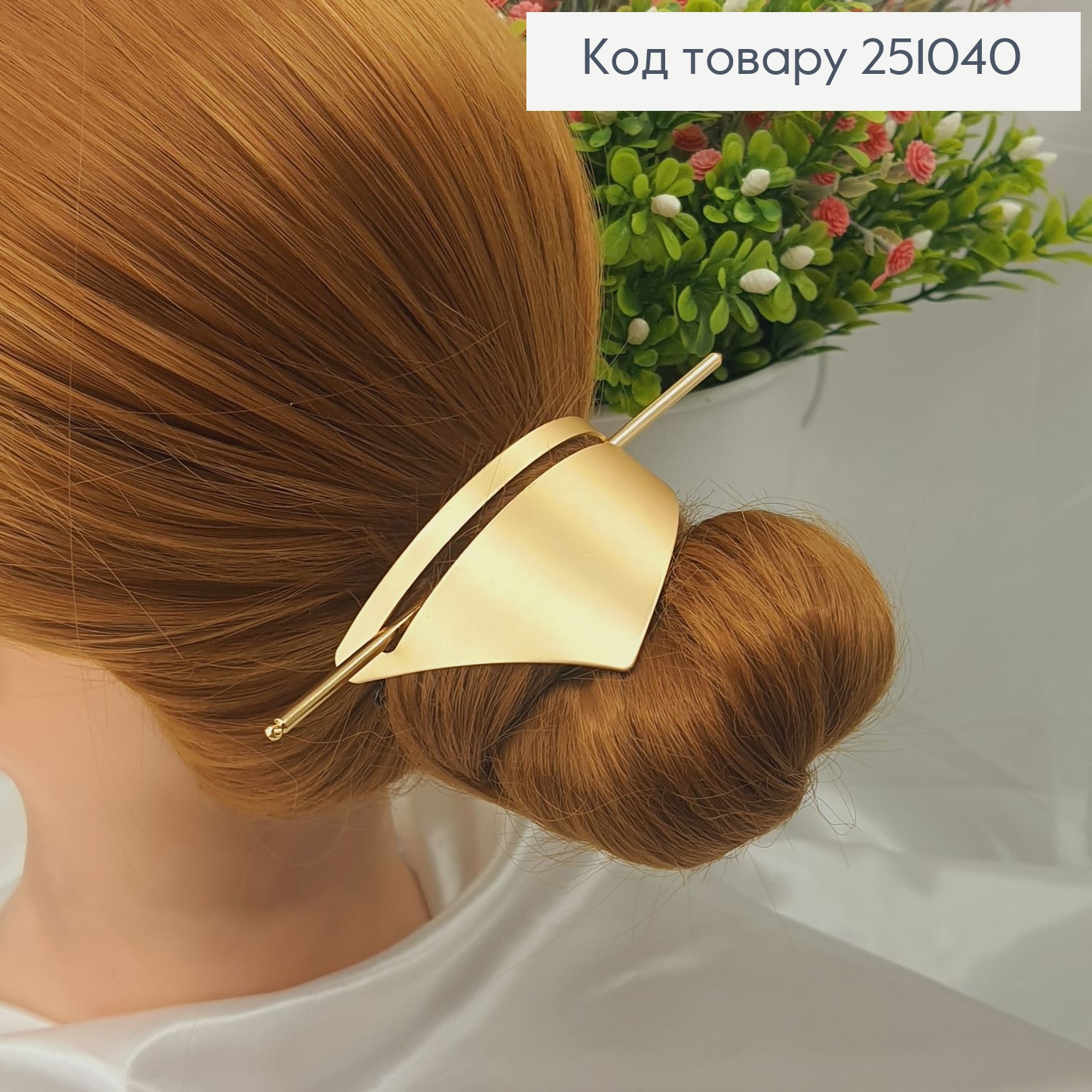 Полукруг металл с заколкой для шишки золотого цвета.