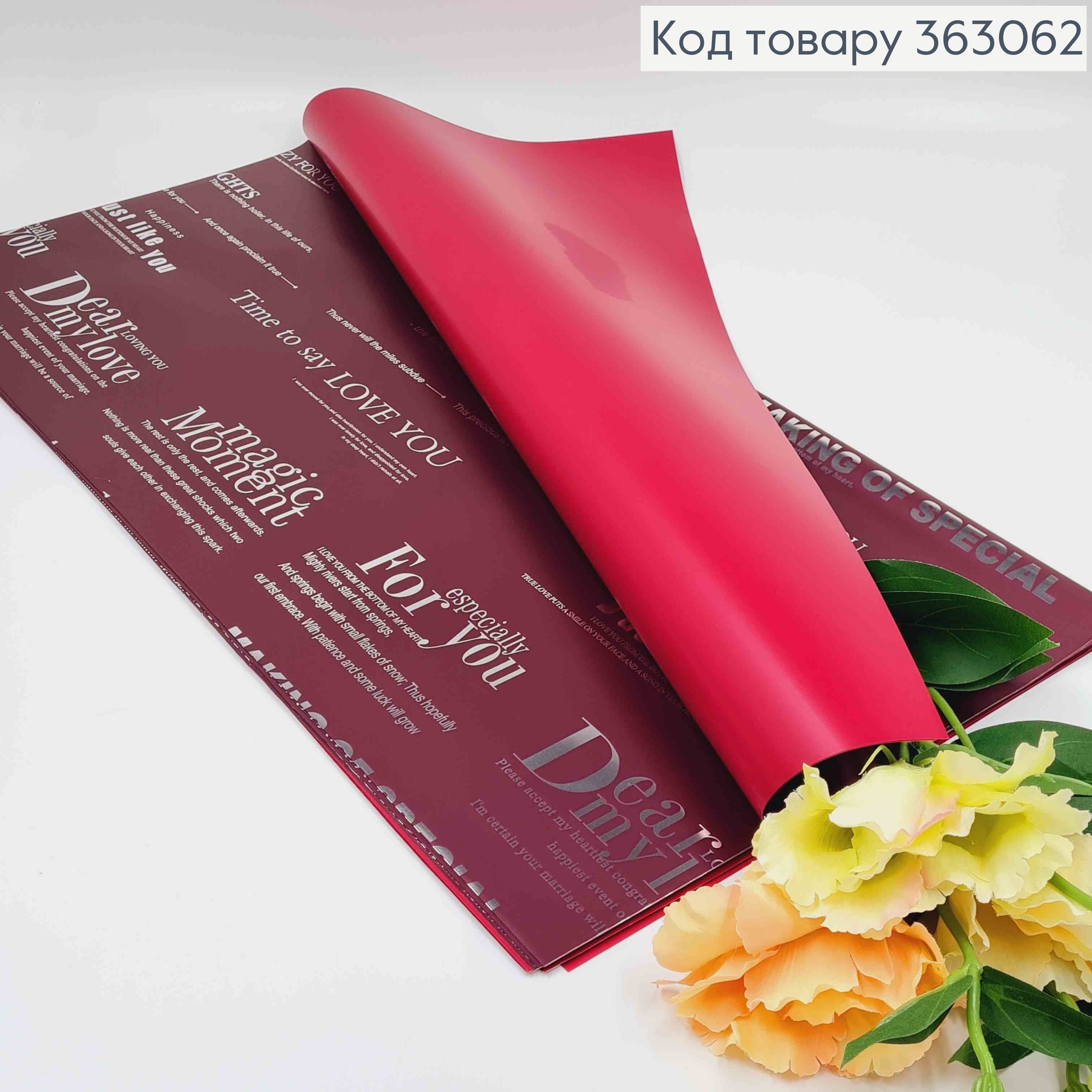 Пленка двухсторонняя БАКЛАЖАНОВА+НАПИСИ/ ВИШНЕВА, в листах 58*58см, 60мкр