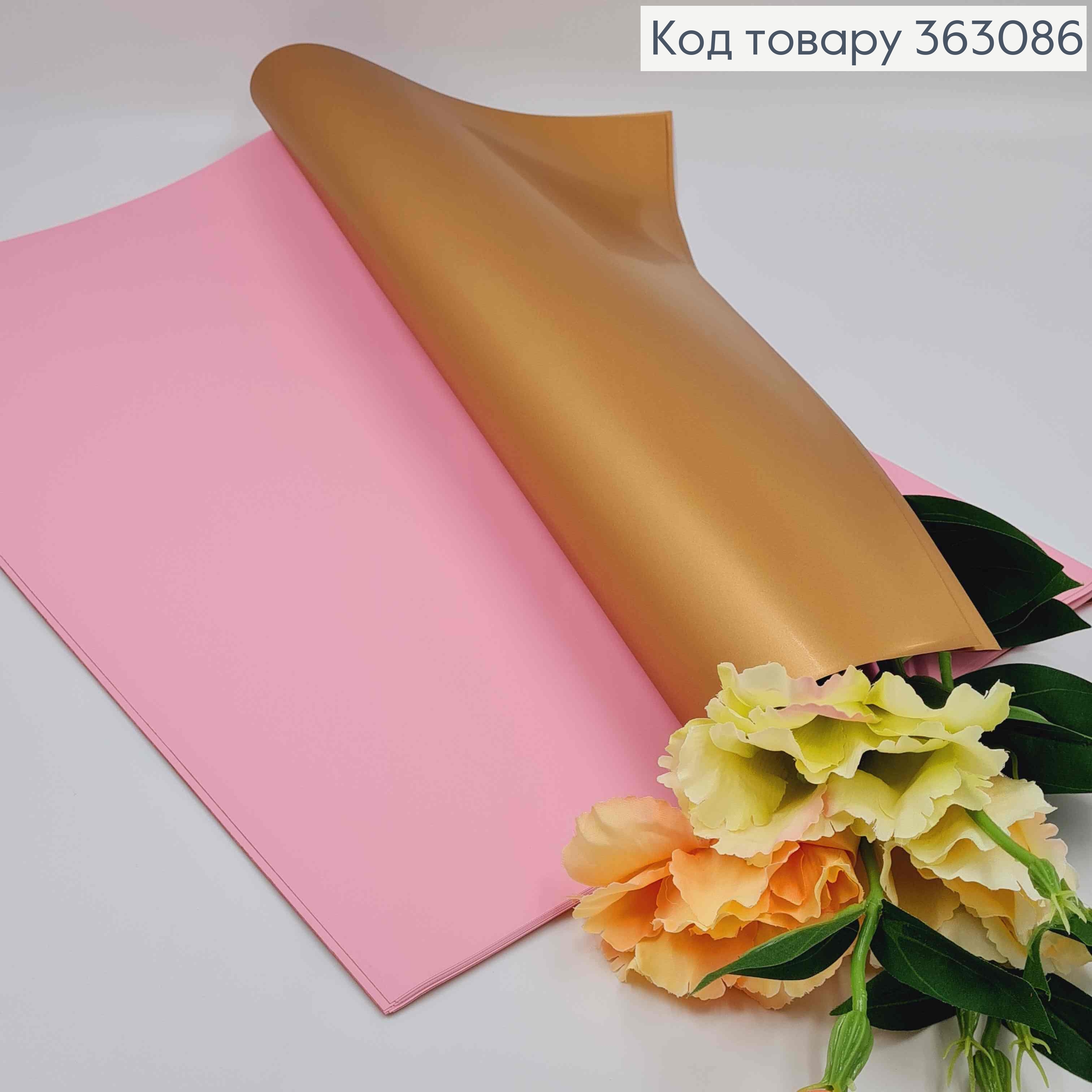 Пленка двухсторонняя, РОЖЕВАЯ+ЗОЛОТО, в листьях 58*58см, 60мкр