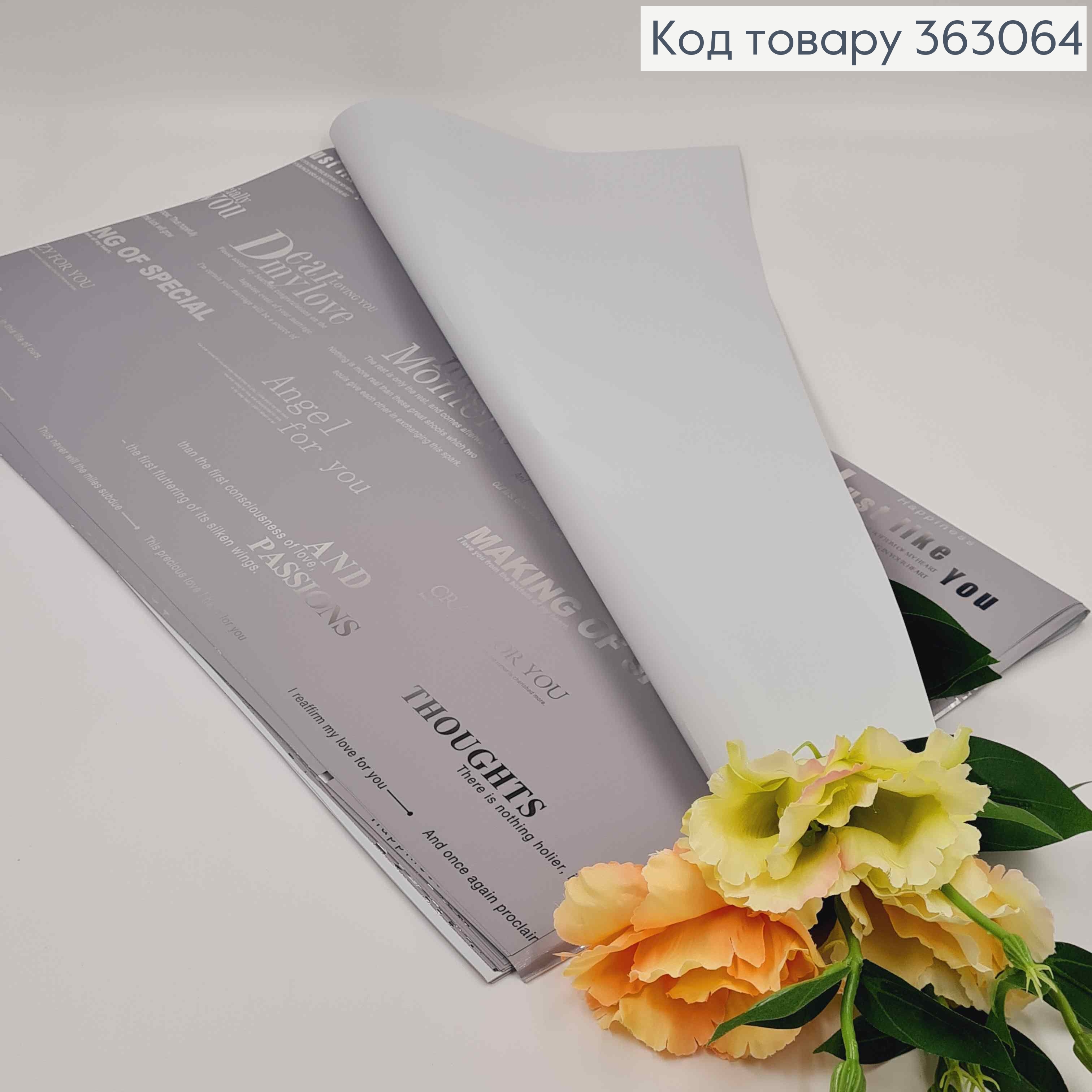 Плівка двостороння СІРА+НАПИСИ/ СВІТЛО-СІРА в листах 58*58см, 60мкр