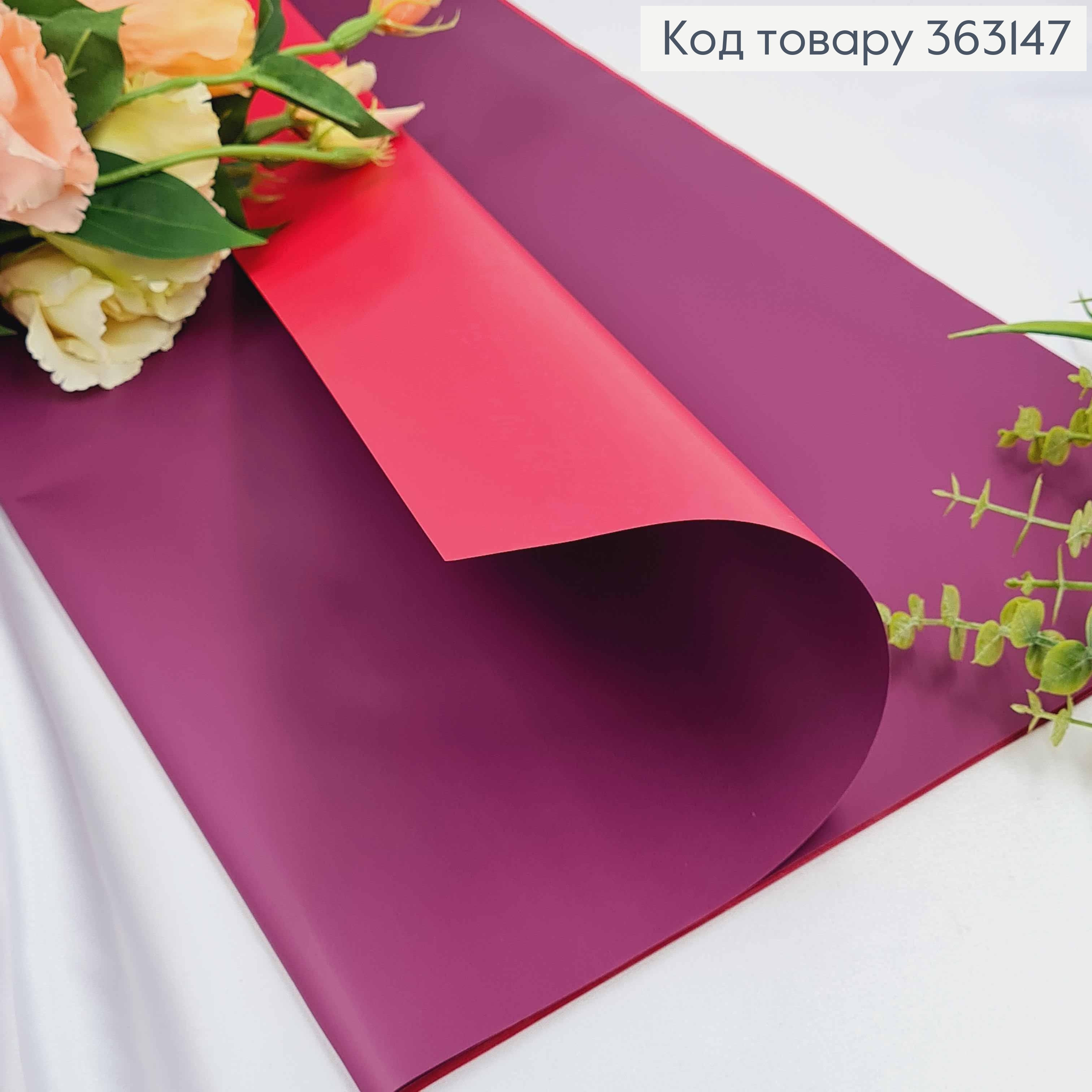 Пленка двухсторонняя, СЛИВОВАЯ+КРАСНЫЙ, в листьях 58*58см, 60мкр.