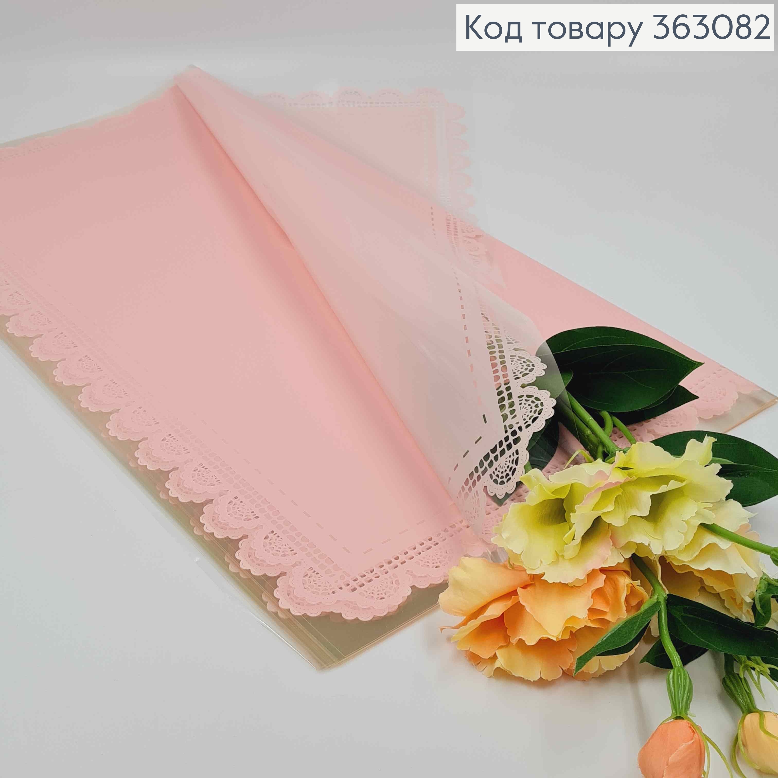 Пленка калька, матовая Розовая с полупрозрачным кружевом, в листах 58*58см, 60мкр
