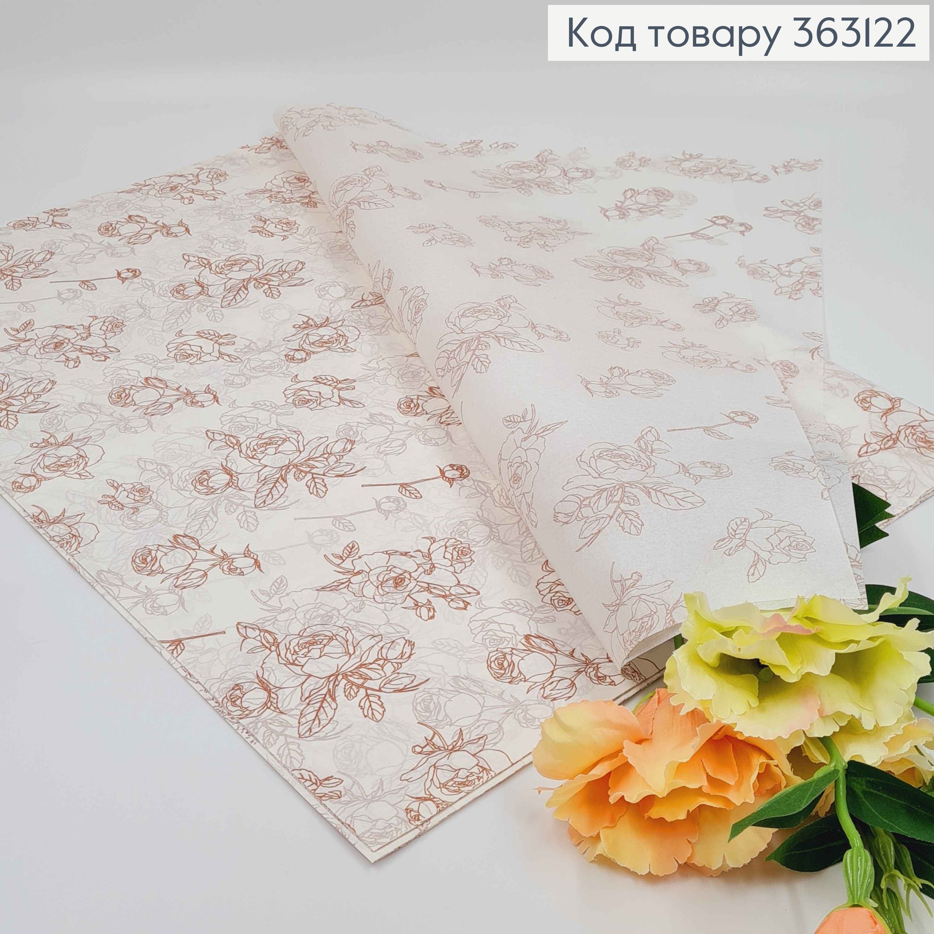 Пленка калька бумажная, БЕЛАЯ+КОРИЧЕСКИЙ УЗОР, в листах 58*58см, Китай