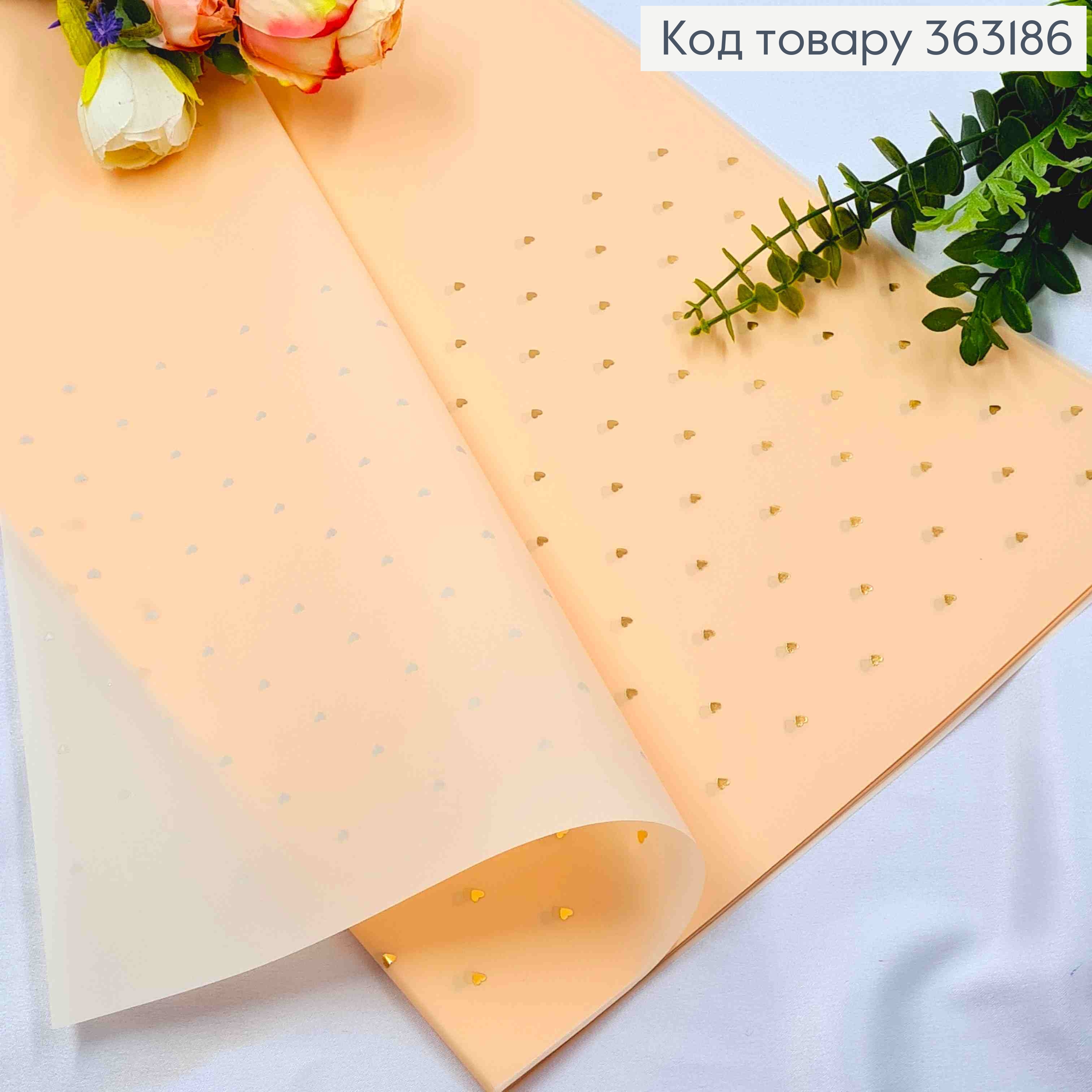 Пленка матовая БЕЖЕВАЯ с Золотыми Сердечками, в листах 58*58см,70мкр