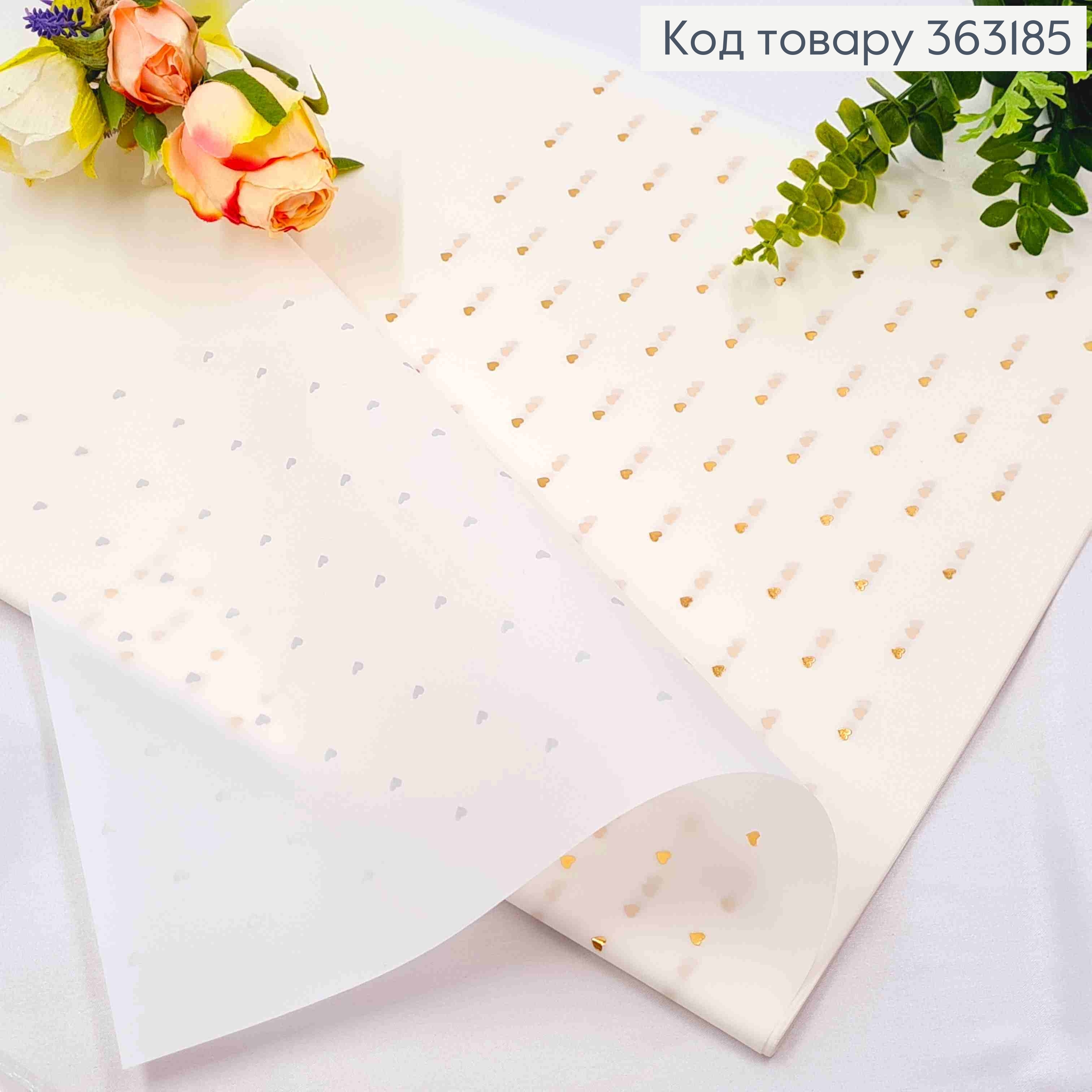 Пленка матовая БЕЛАЯ с Золотыми Сердечками, в листах 58*58см,70мкр