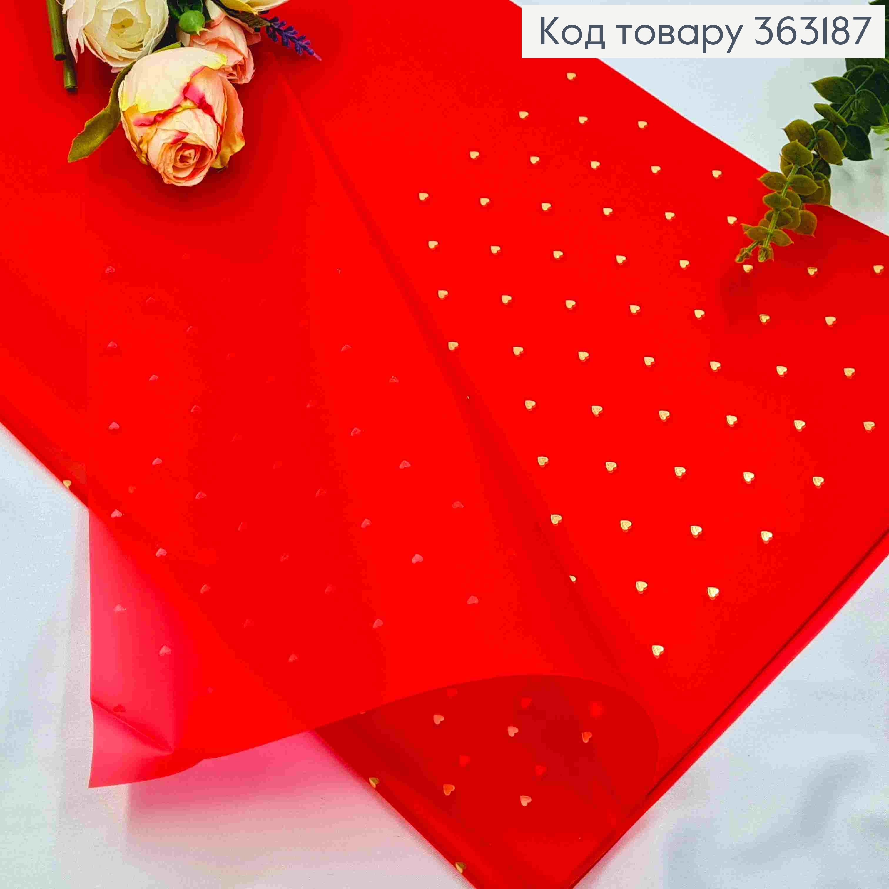 Пленка матовая КРАСНАЯ с Золотыми Сердечками, в листьях 58*58см,70мкр.