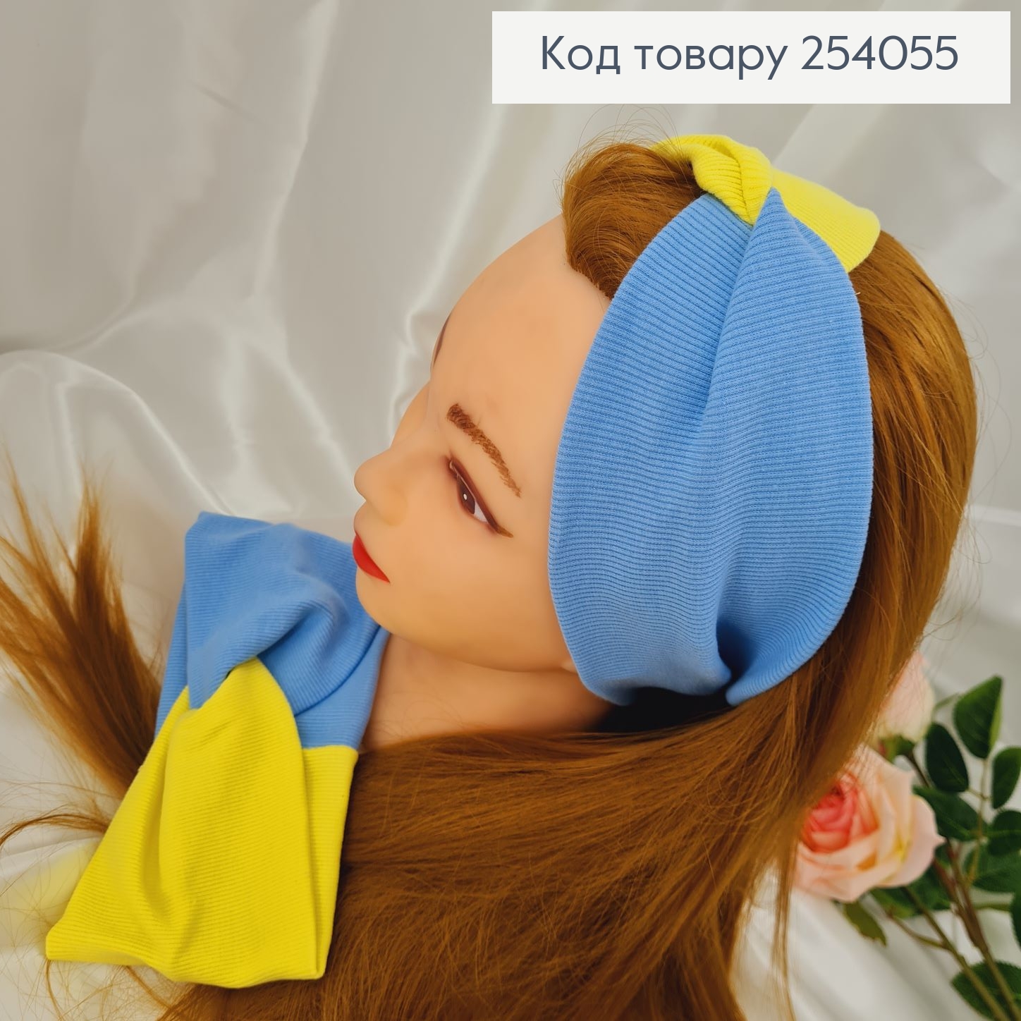 Резинка, БАНТ репсовый, Желто-Синего цвета с приложением в виде цветка, 10*8см, Ручная работа 276008 фото