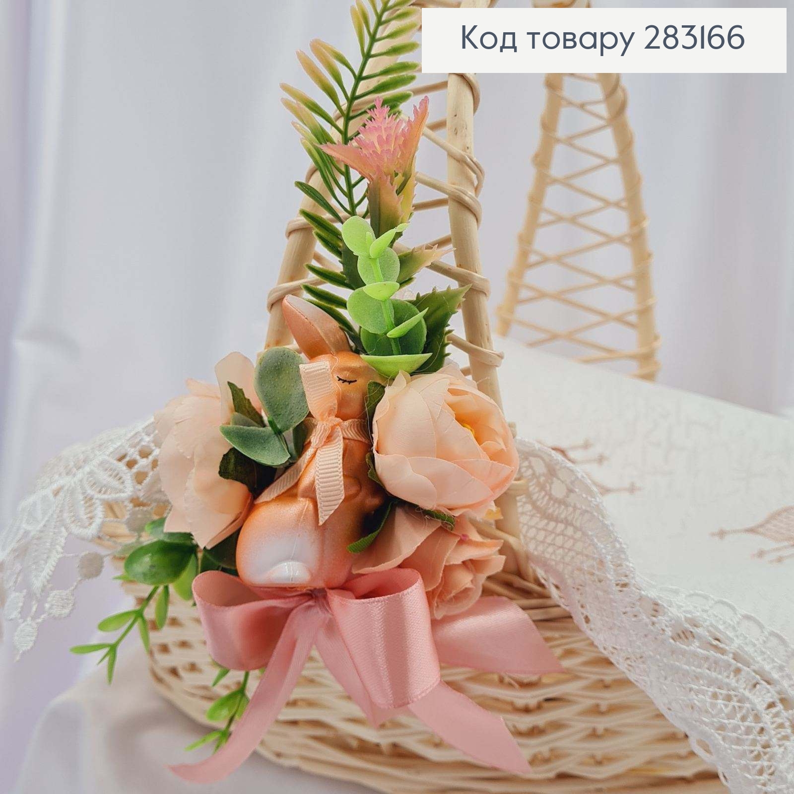Повязка для корзины ЗАЙЧИК розово-персиковые цвета, размер 20*12см, ручная работа, Украина
