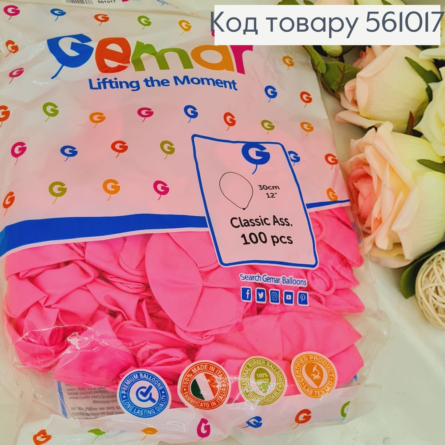 Воздушный шар латексный 12' Gemar ярко розовый матовый (30 см), 100 шт