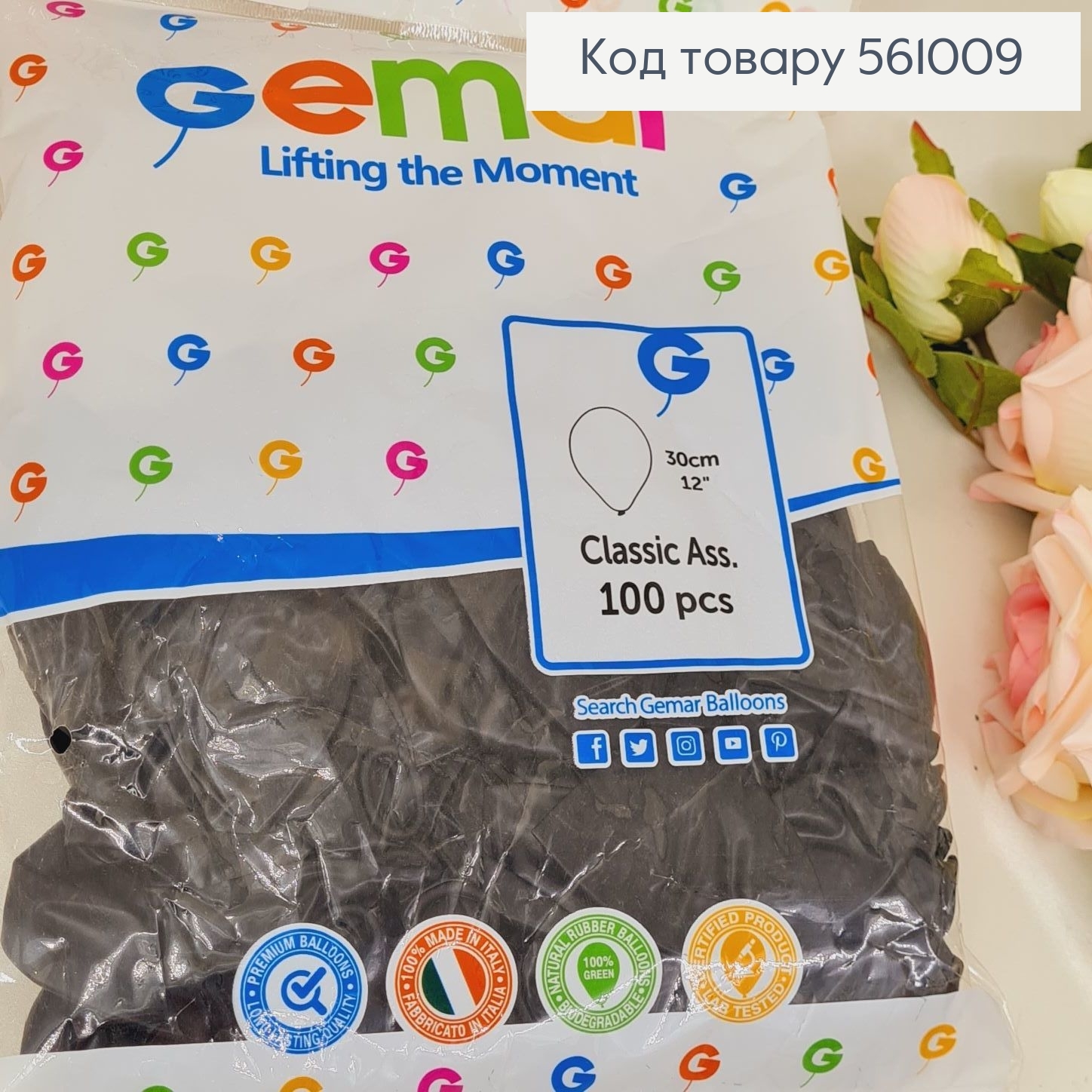Воздушный шар латексный 12' Gemar черный матовый (30 см), 100 шт