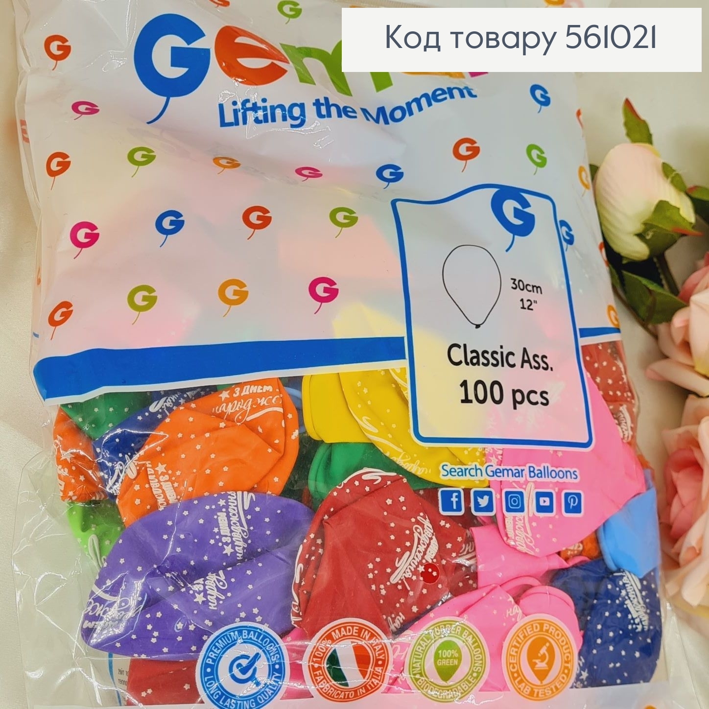 Воздушный шар латексный 12' Gemar цветной матовый "С днем рождения" (30 см), 100 шт