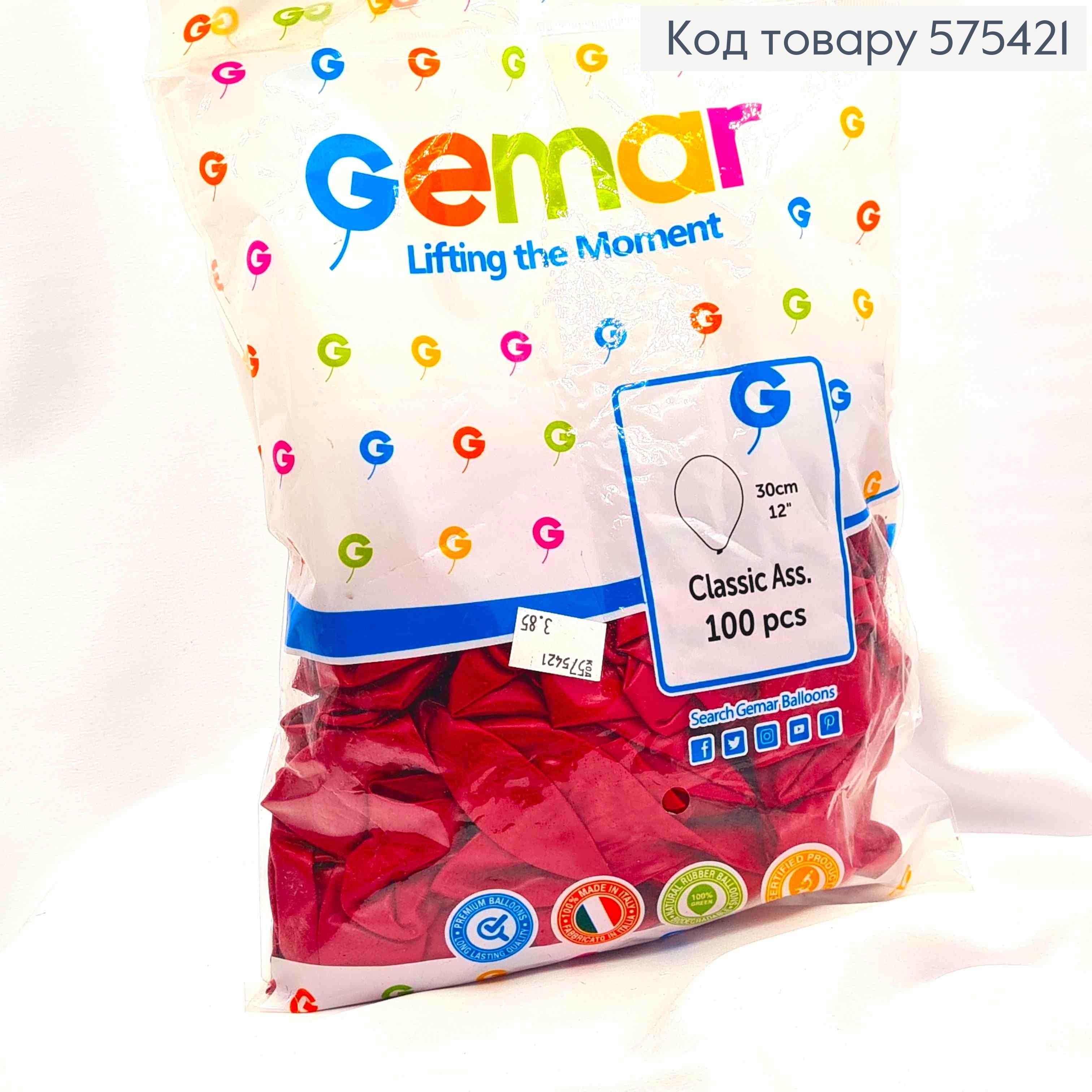Воздушные шары, латексные 12" Gemar, серебряного цвета, 100шт\уп
