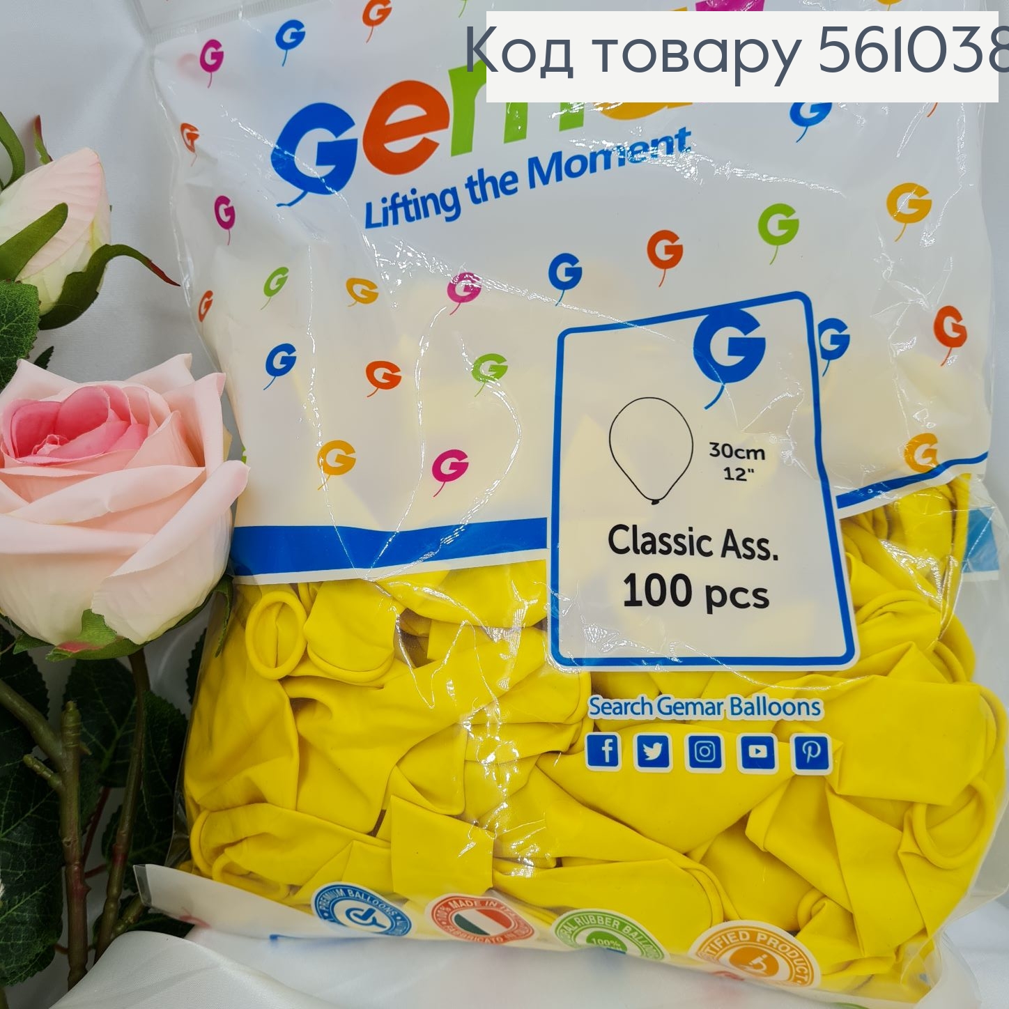 Воздушный шар латексной 12' Gemar ЖОЛТЫЙ матовый (30 см), 100 шт