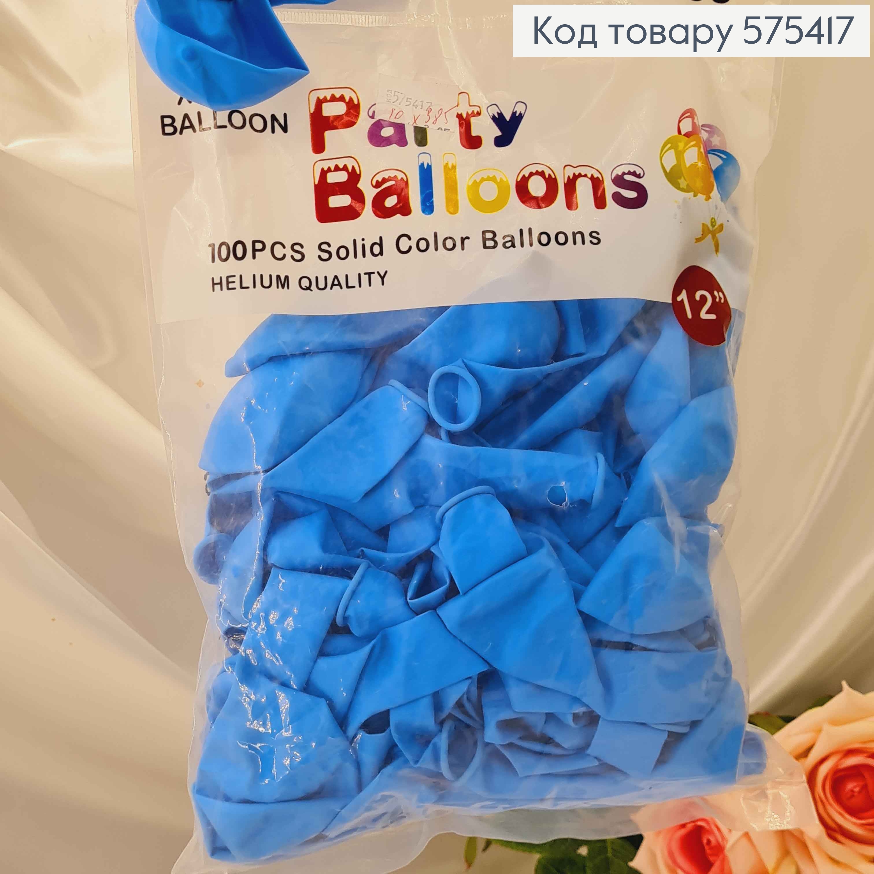 Воздушный шар латексный 12" Party Ballons голубой матовый, (30см), 100шт в упаковке, Китай