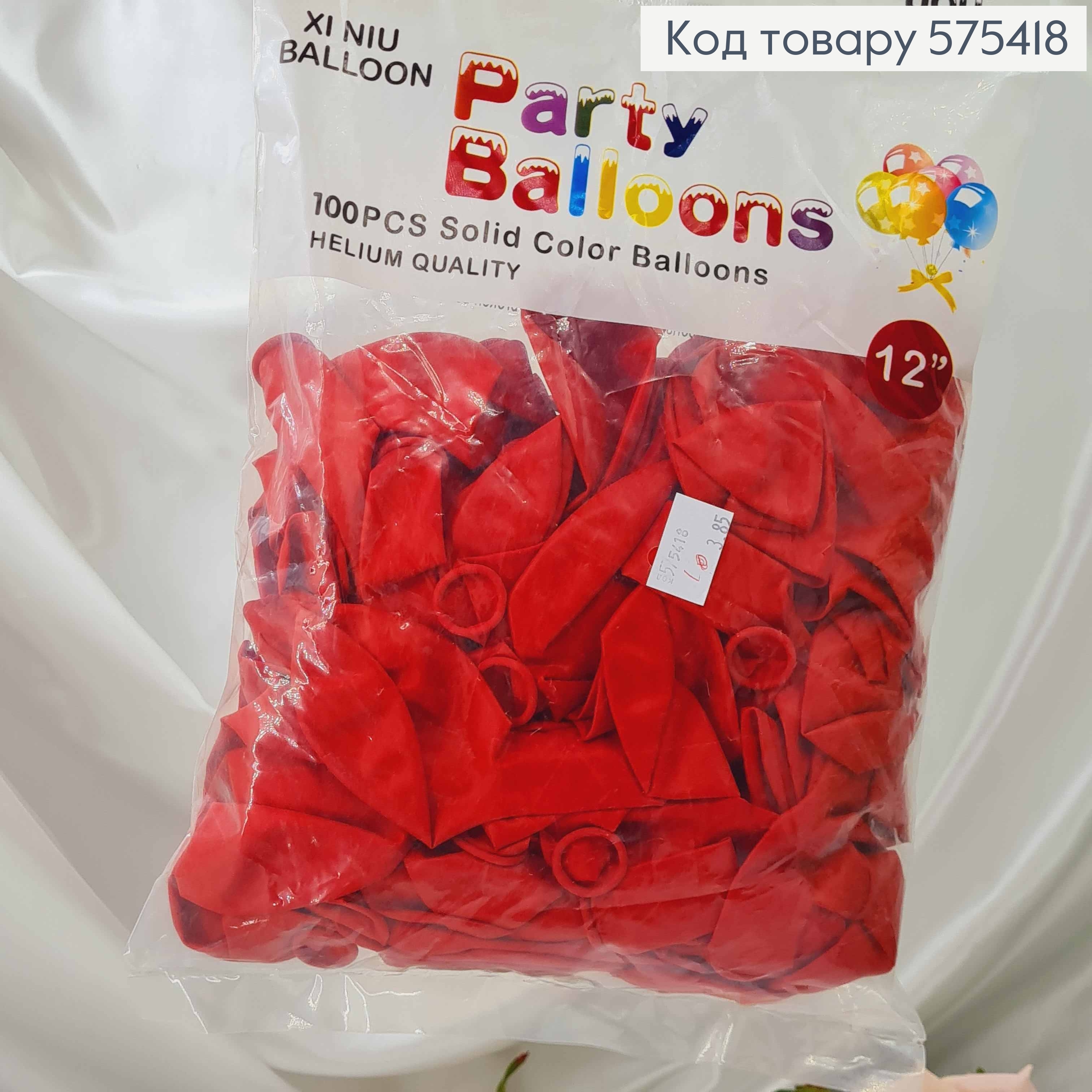 Воздушный шар латексный 12" Party Ballons КРАСНЫЙ матовый, (30см), 100шт в упаковке, Китай