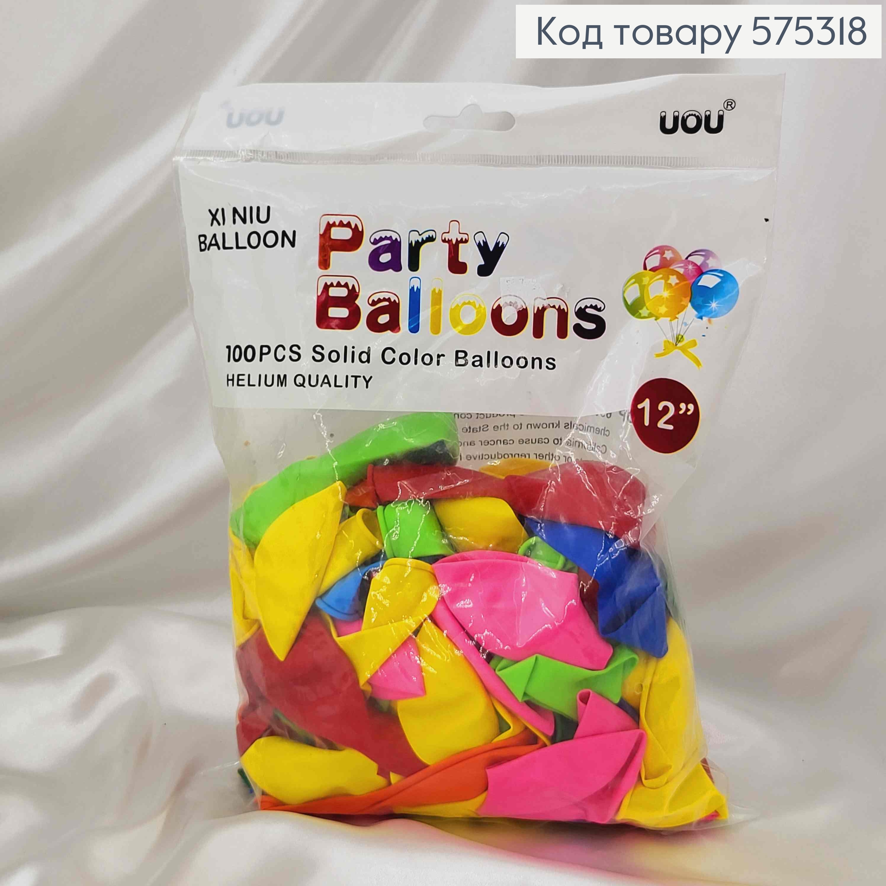Воздушные шары латексные, ЦВЕТНЫЕ, 12'' UOU, 100шт/уп