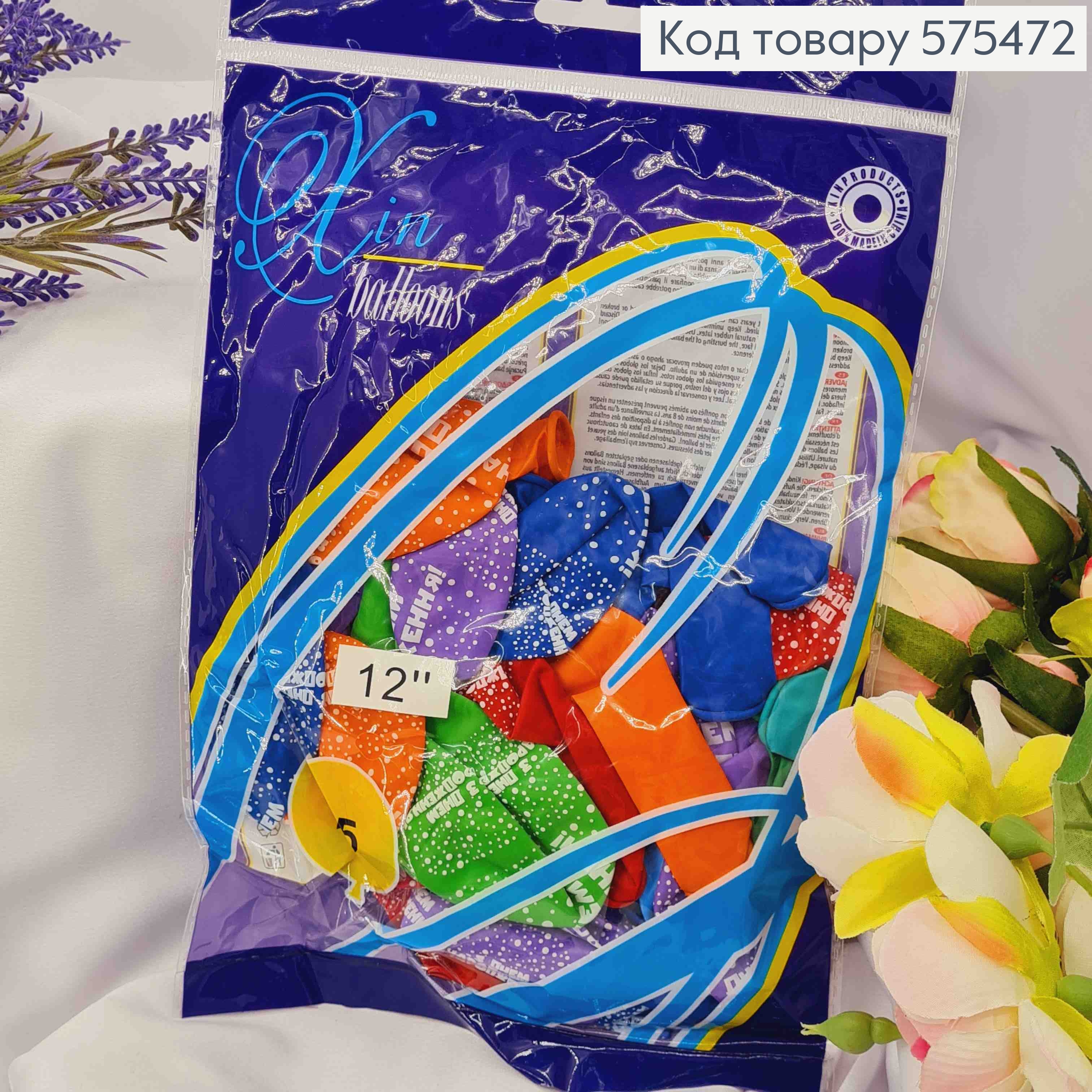 Воздушные шары латексные, Разноцветные с надписью "С Днем Рождения", 12' XIN, 25шт/уп