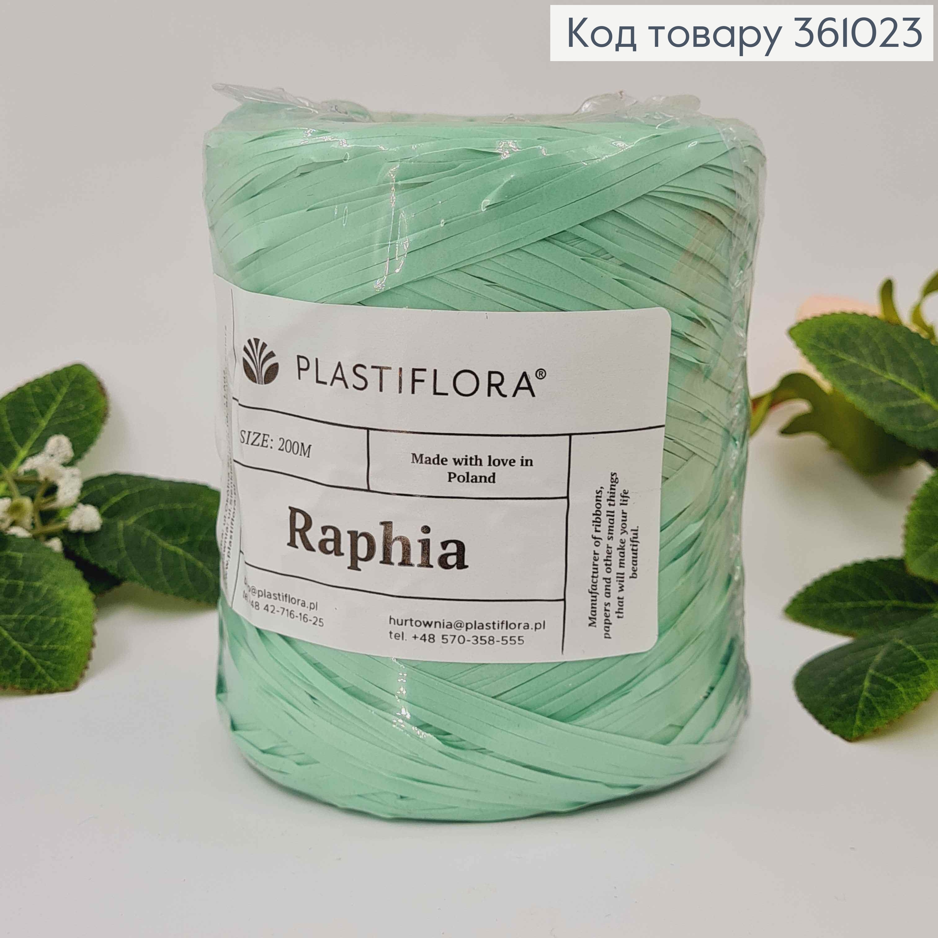 Рафия в мотке, АКВАМАРИНОВА, 200метров, производитель Польша