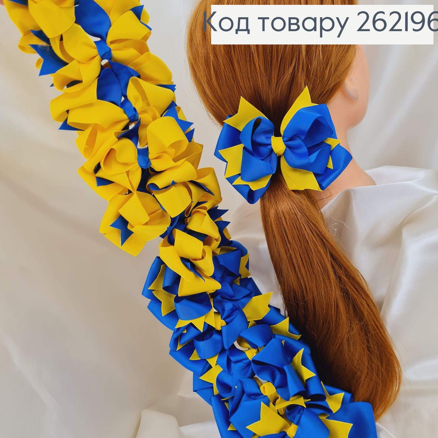Резинка, БАНТ репсовый, Желто-Синего цвета с приложением в виде цветка, 10*8см, Ручная работа 276008 фото