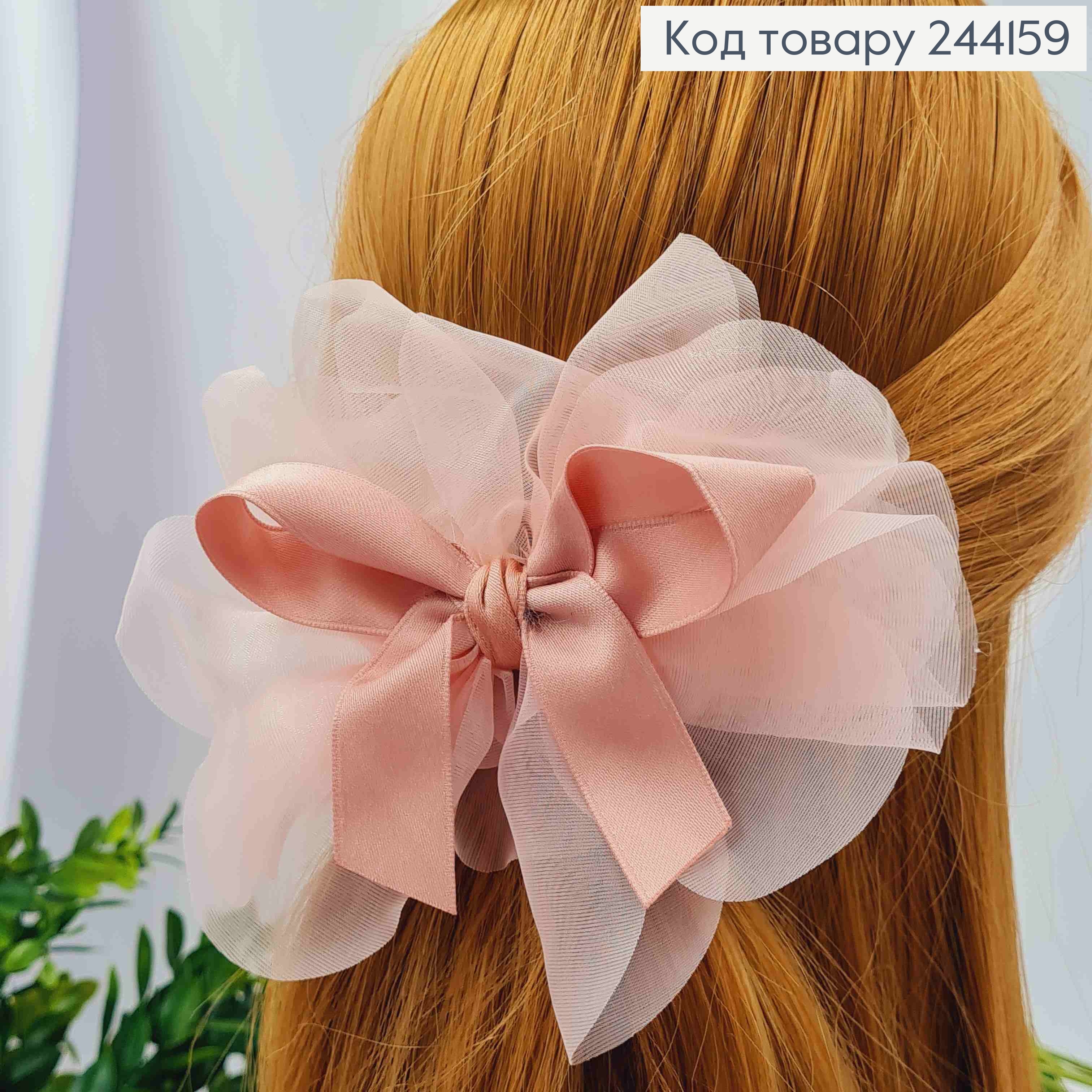 Резинка, АЖУРНЫЙ БАНТ (14*12см), ткань органза кристаллин,Нежно-Розового цвета, ручная работа,Китай