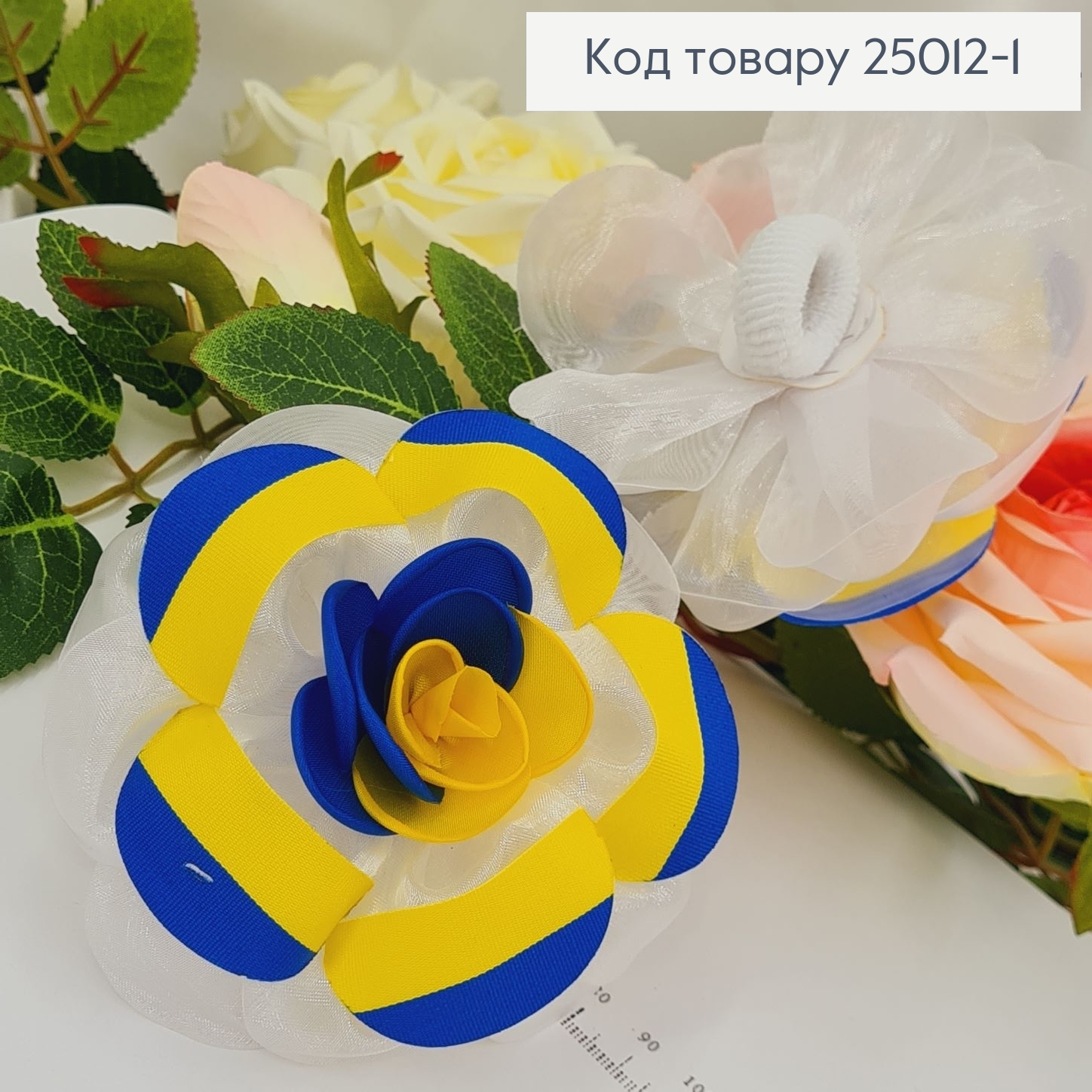 Резинка Бант Квітка 9см (желто-синий) , ручнпя работа, Украина
