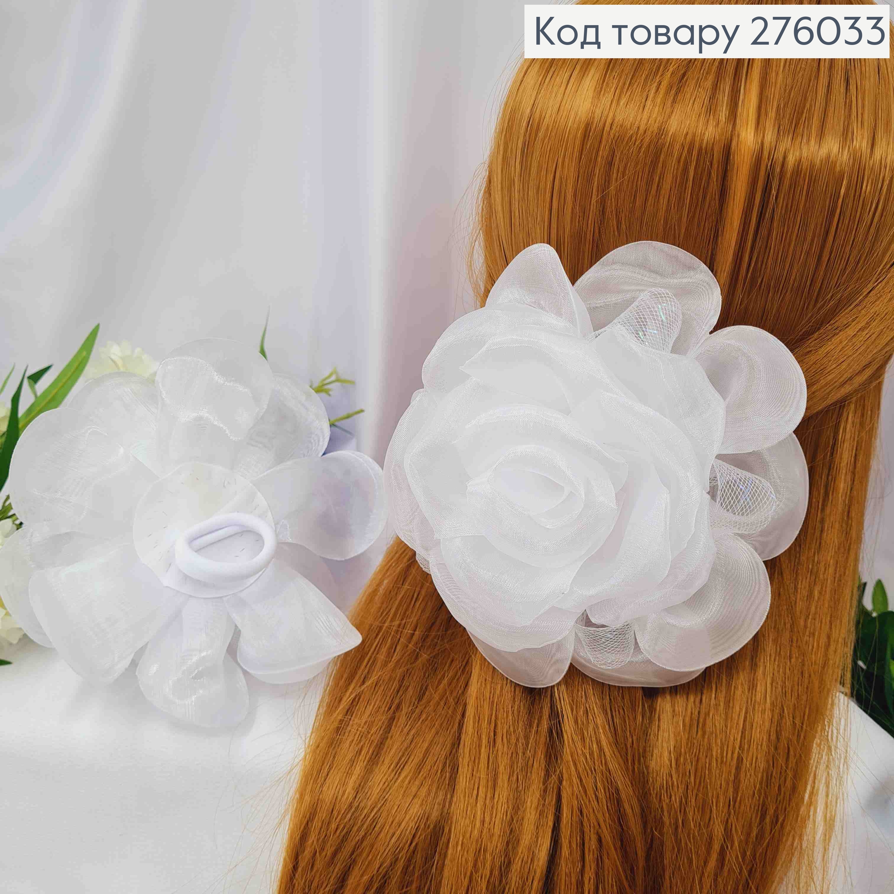 Резинка, БАНТ "Цветок", органза с сеткой, Белого цвета, 14см, ручная работа, Украина