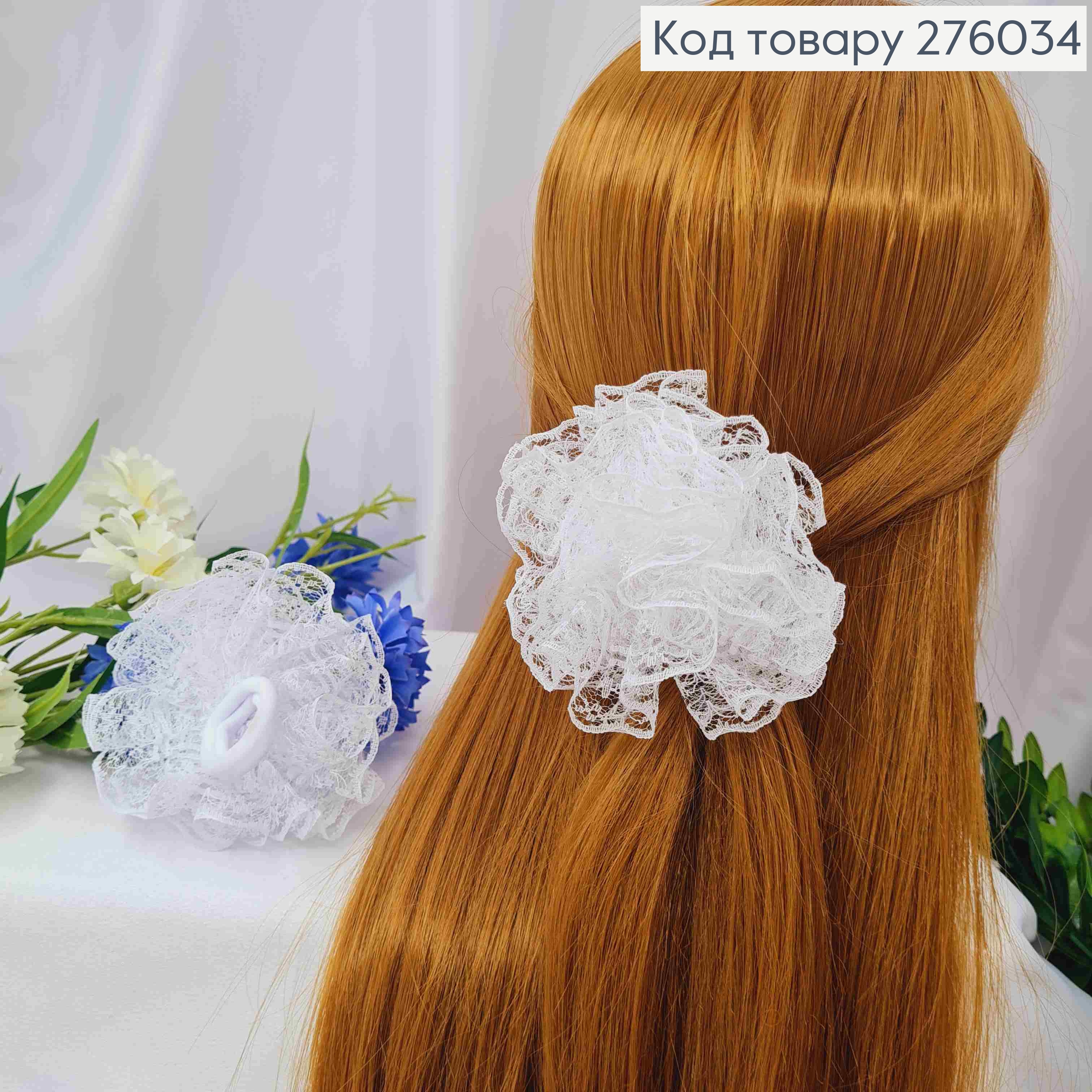 Бант БЕЛОГО цвета, на заколке 5,5см, ткань кружево+атлас, размер 15*25см, Украина. 276158 фото