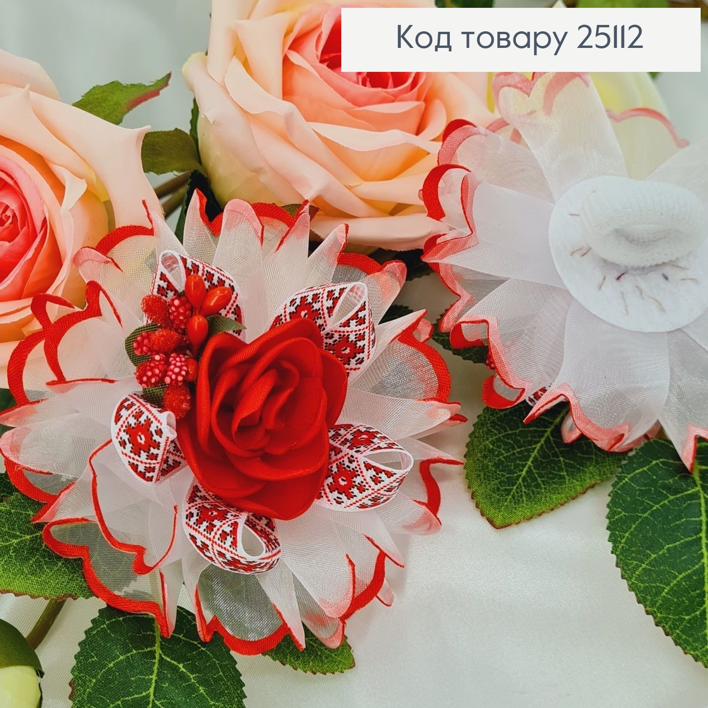 Резинка Бант цветочек в красном орнаменте с красным цветком в центре, ручная робота Украина