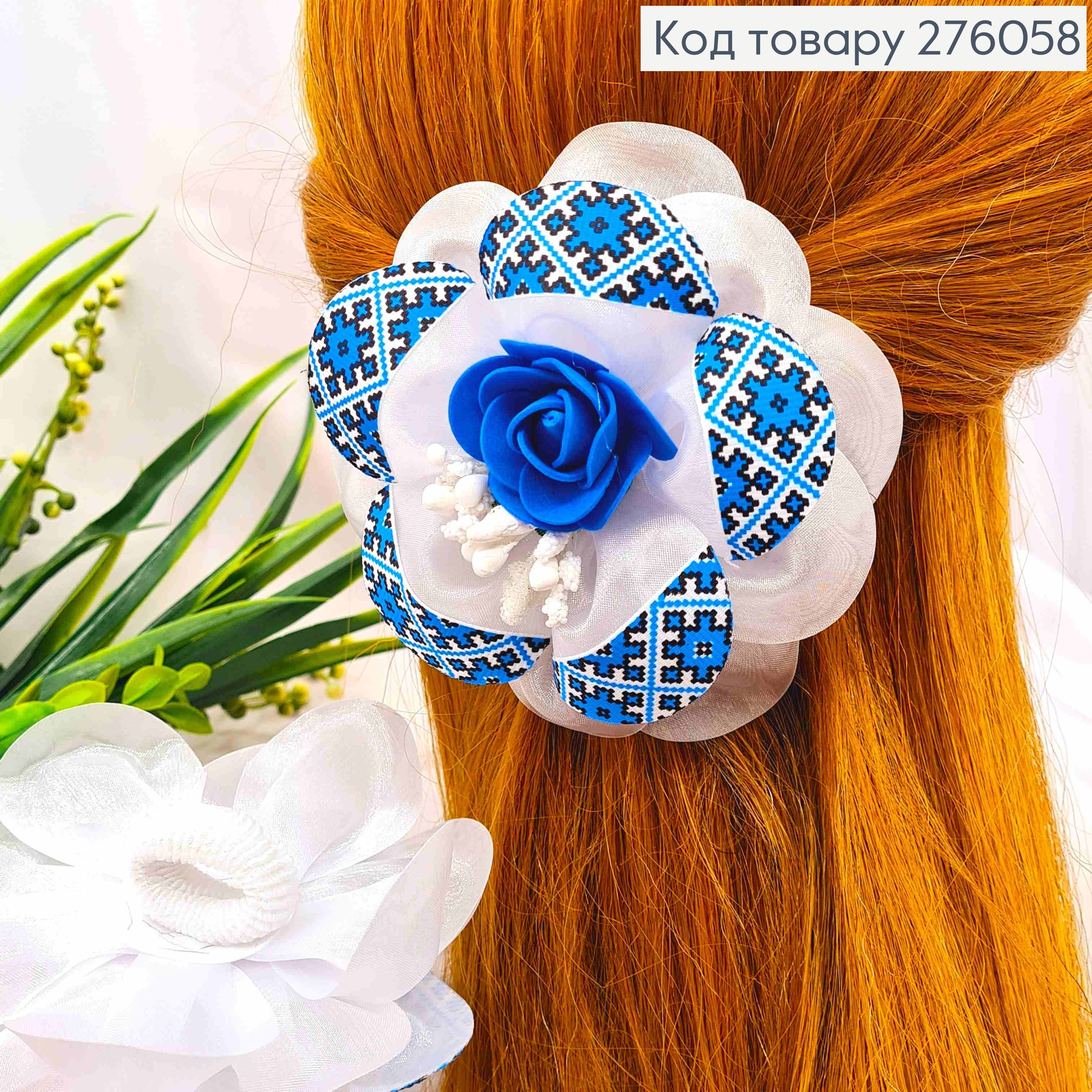 Резинка Бант цветочек в голубом орнаменте с цветочками по центру, ручная робота Украина