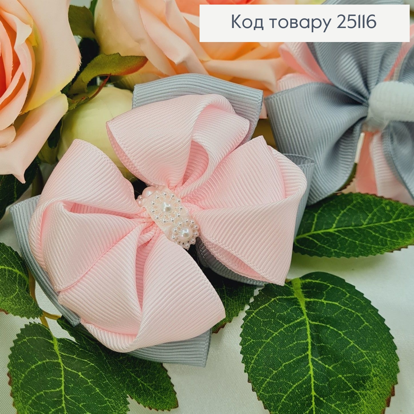 Резинка Бант репсовий розовой и серый в асорт. 7 см, ручная робота Украина