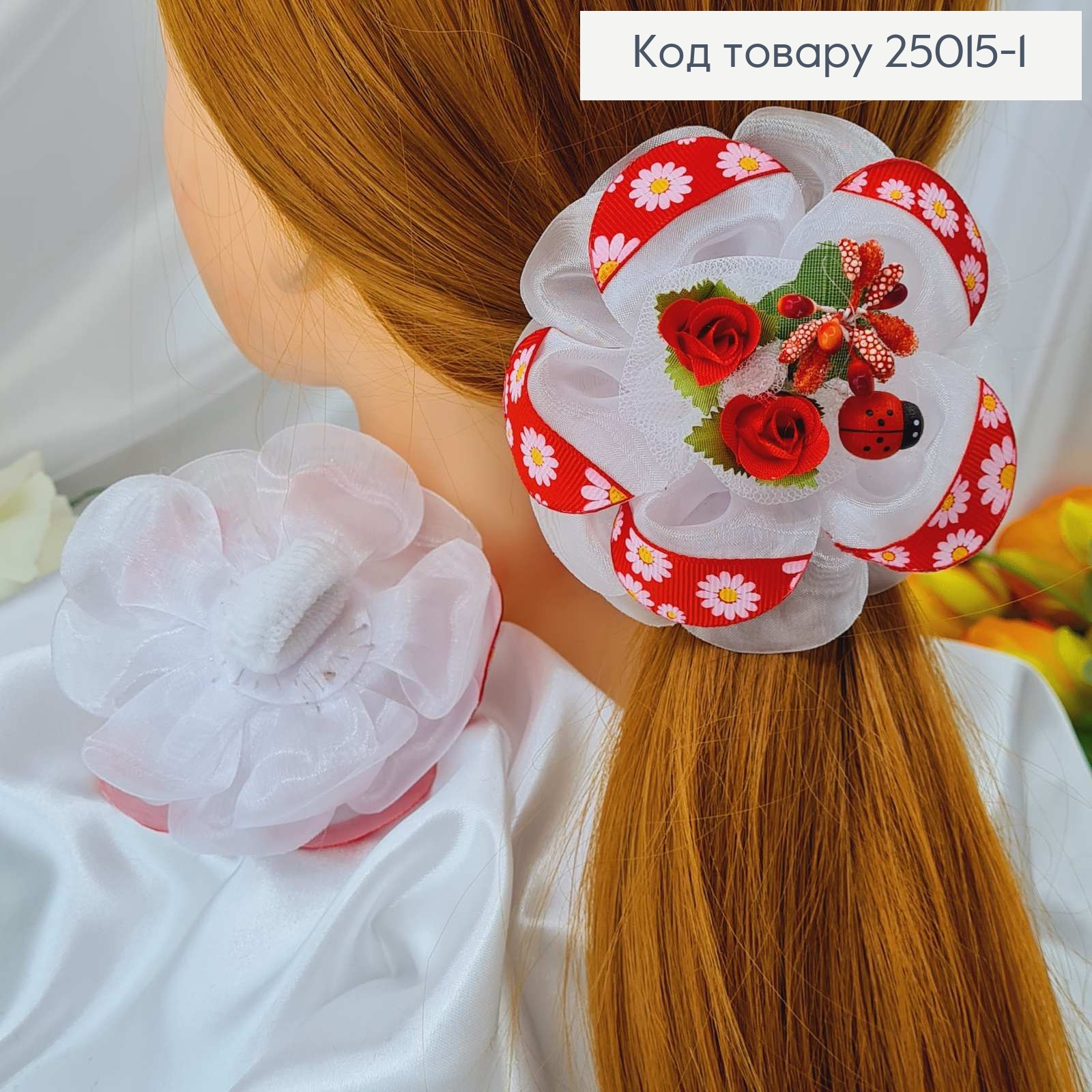 Резинка Бант, Украинский мотив с красным цветком и божьей коровкой,10см, Украина