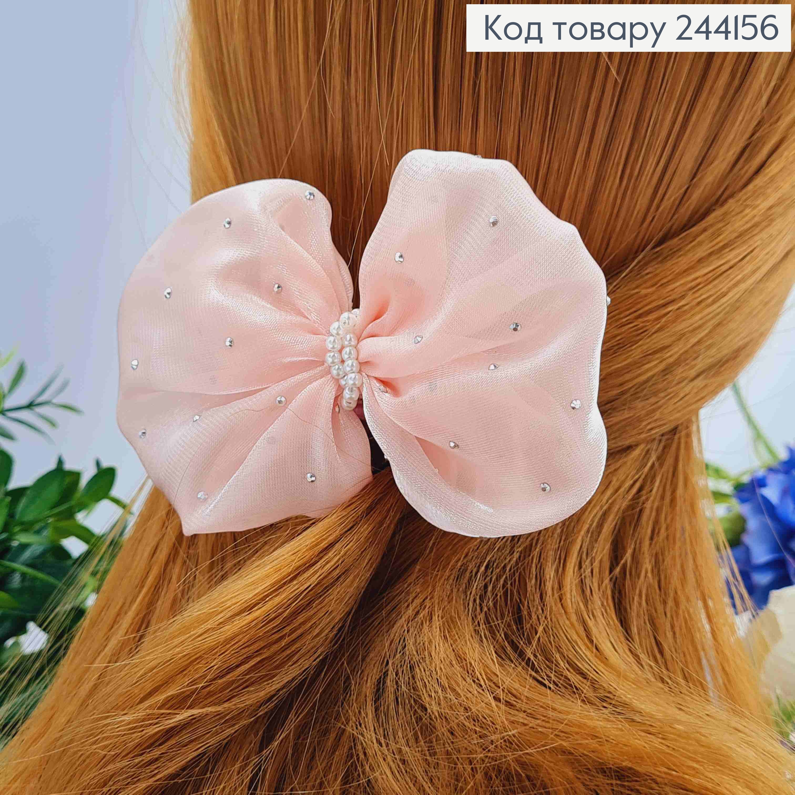 Резинка, БАНТ с бусинками и стразами, 10,5см, Нежно-Розового цвета, ручная работа, Китай.