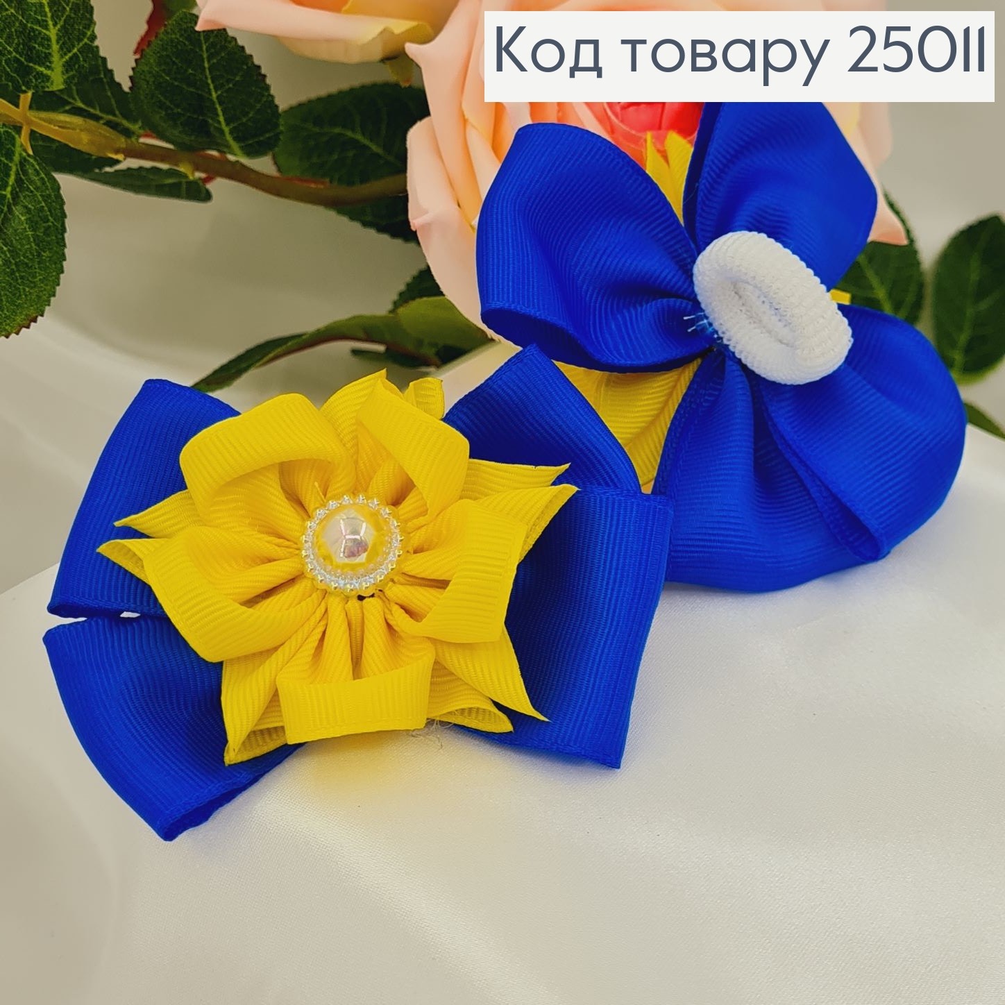 Резинка, БАНТ репсовый, Желто-Синего цвета с приложением в виде цветка, 10*8см, Ручная работа 276008 фото