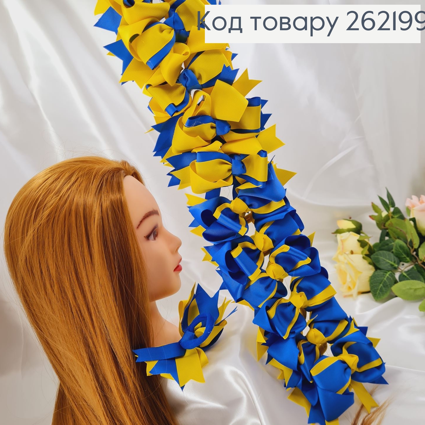 Резинка, БАНТ репсовый, Желто-Синего цвета с приложением в виде цветка, 10*8см, Ручная работа 276008 фото