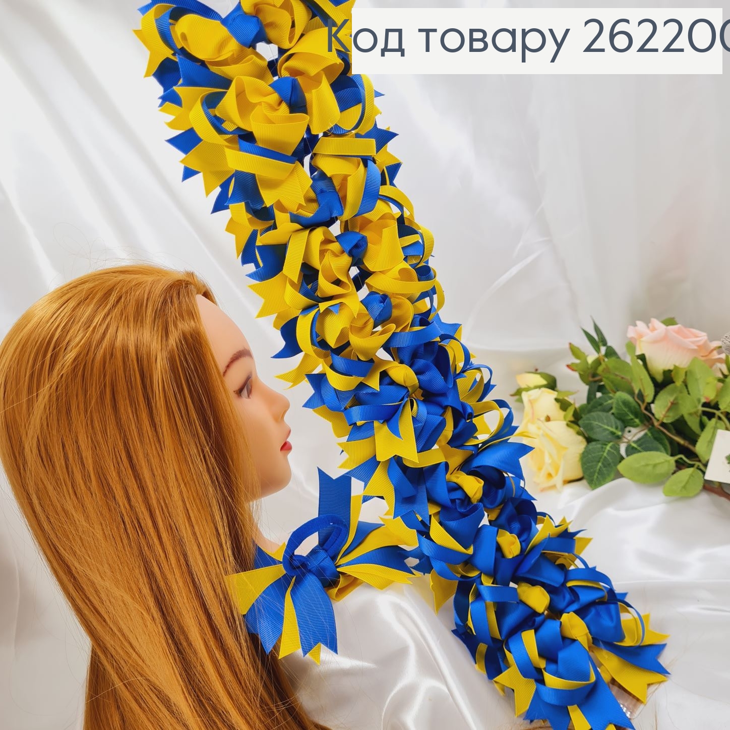 Резинка, БАНТ репсовый, Желто-Синего цвета с приложением в виде цветка, 10*8см, Ручная работа 276008 фото