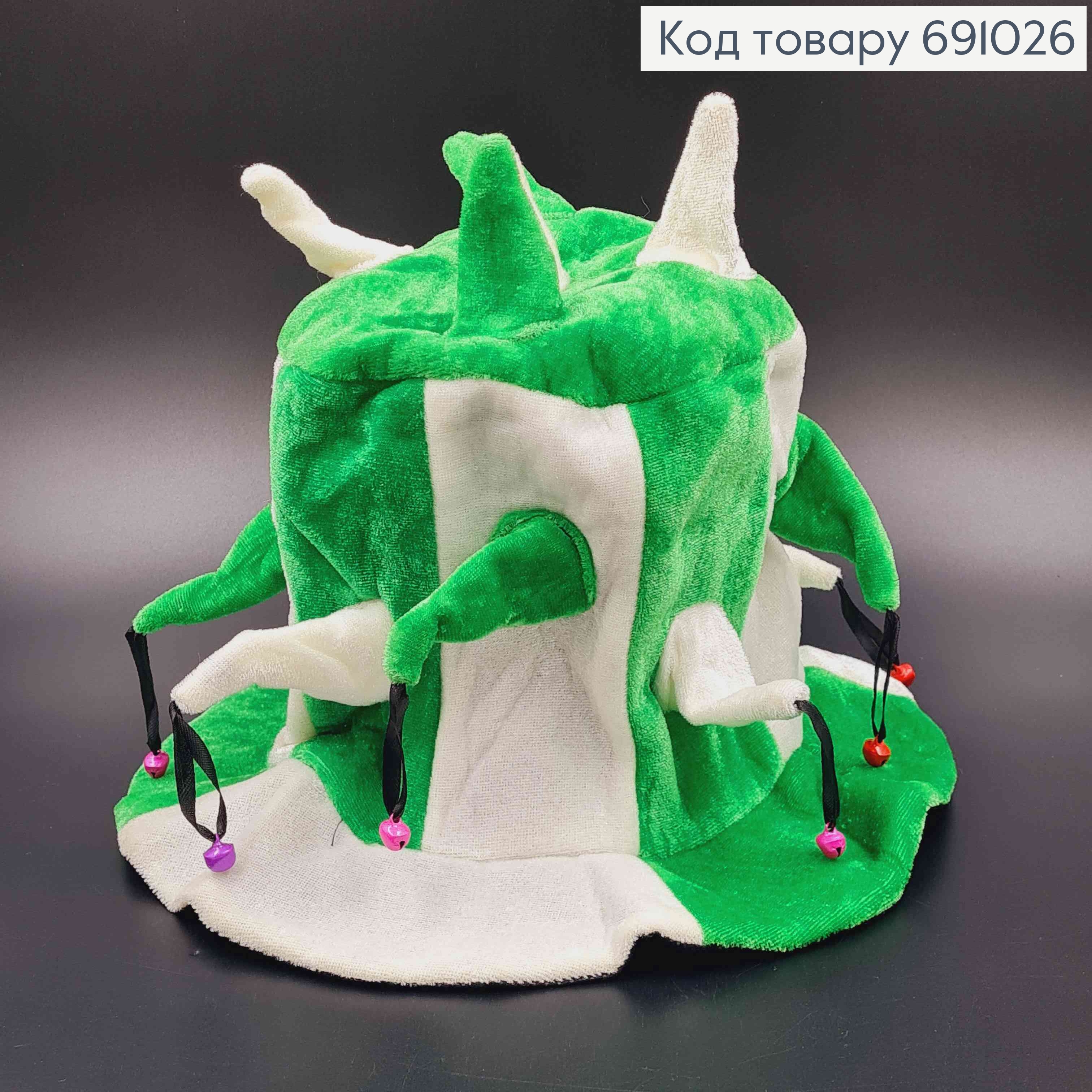 Шапочка футбольного болельщика, карнавальная, с колокольчиками, бело-зеленая, диам. 28см