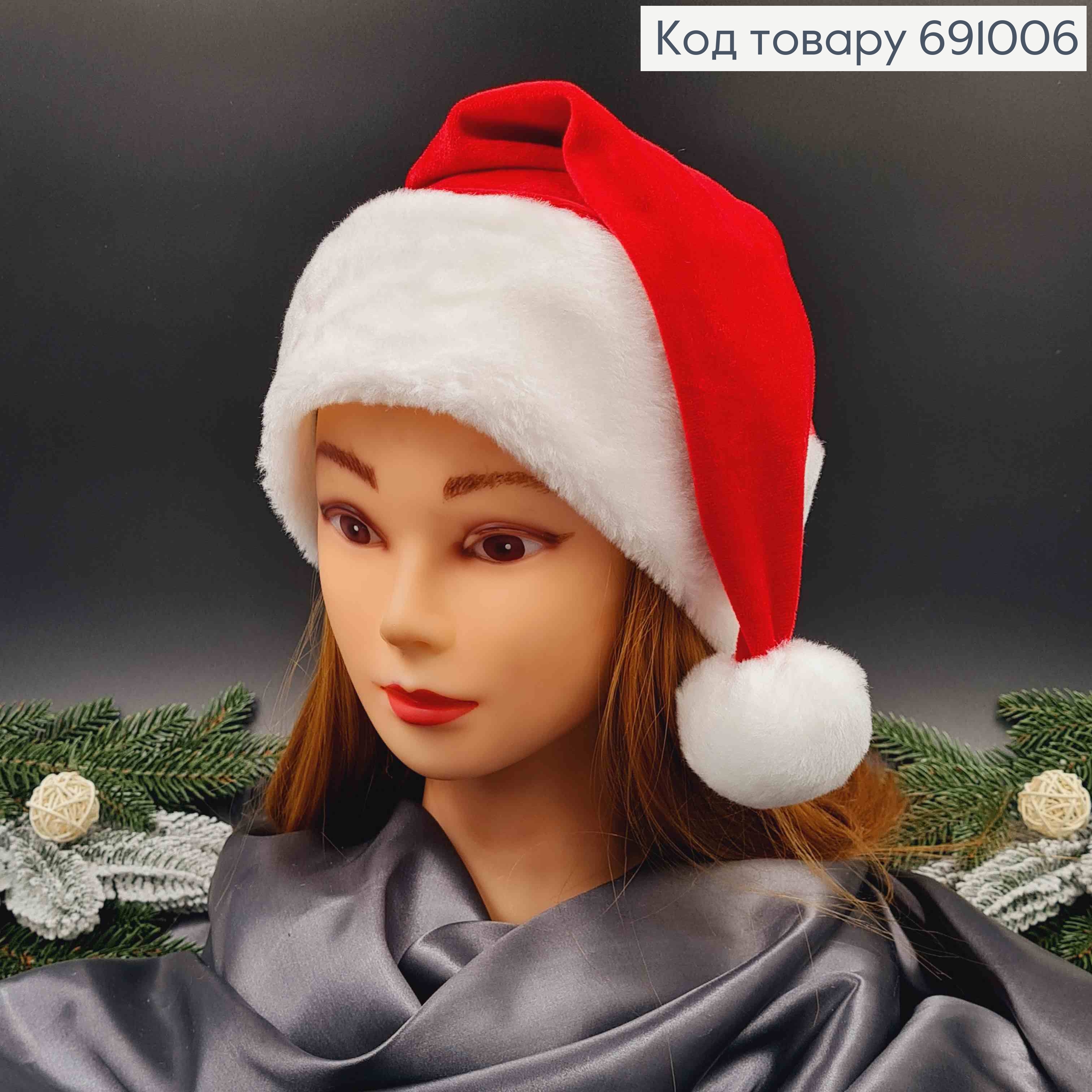Шапочка новогодняя, Красного цвета, велюровая с мехом