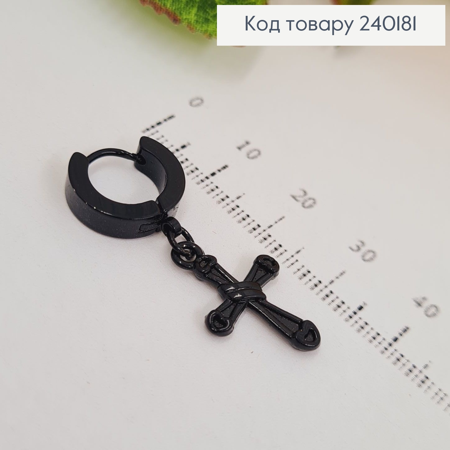 СЕРЬГА 1шт. черного цвета кольцо 1см, крестик 1,9*1,2см Stainless Still
