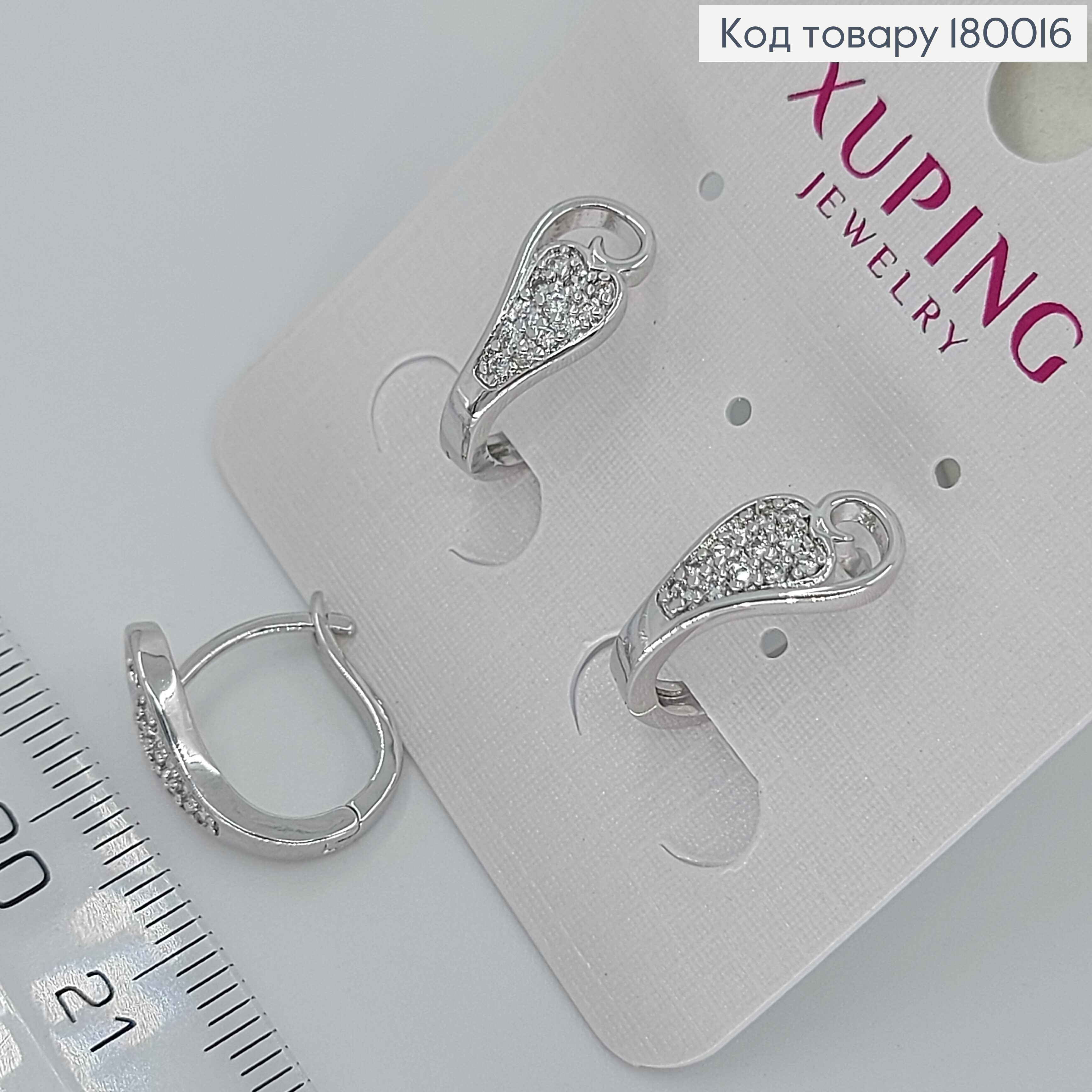 Серьги родованные "Блеск" украшены Блестящими камешками, 1,9см, английская застежка, Xuping 181961 фото