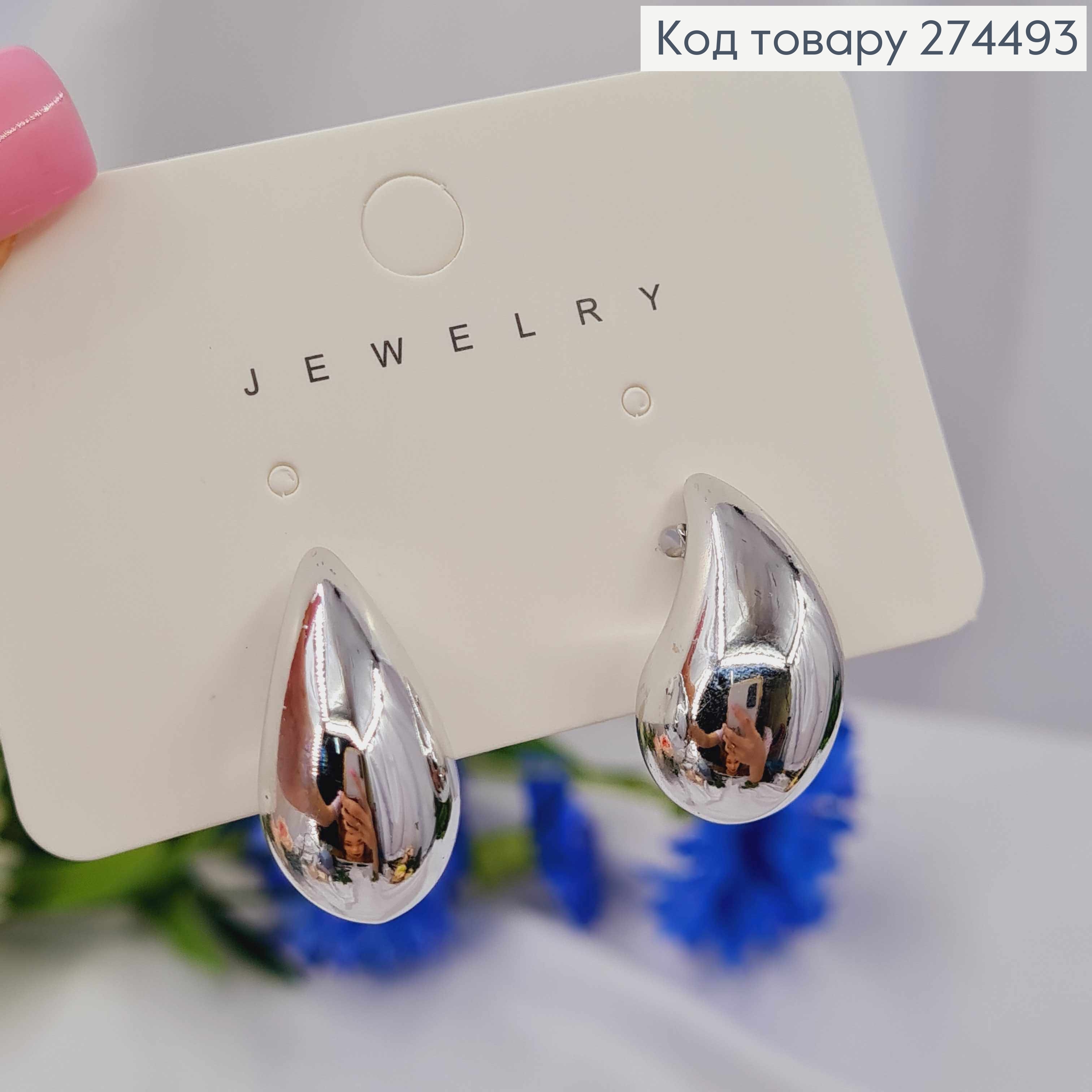 Серьги гвоздики, "Капельки", серебряного цвета, 2,4см